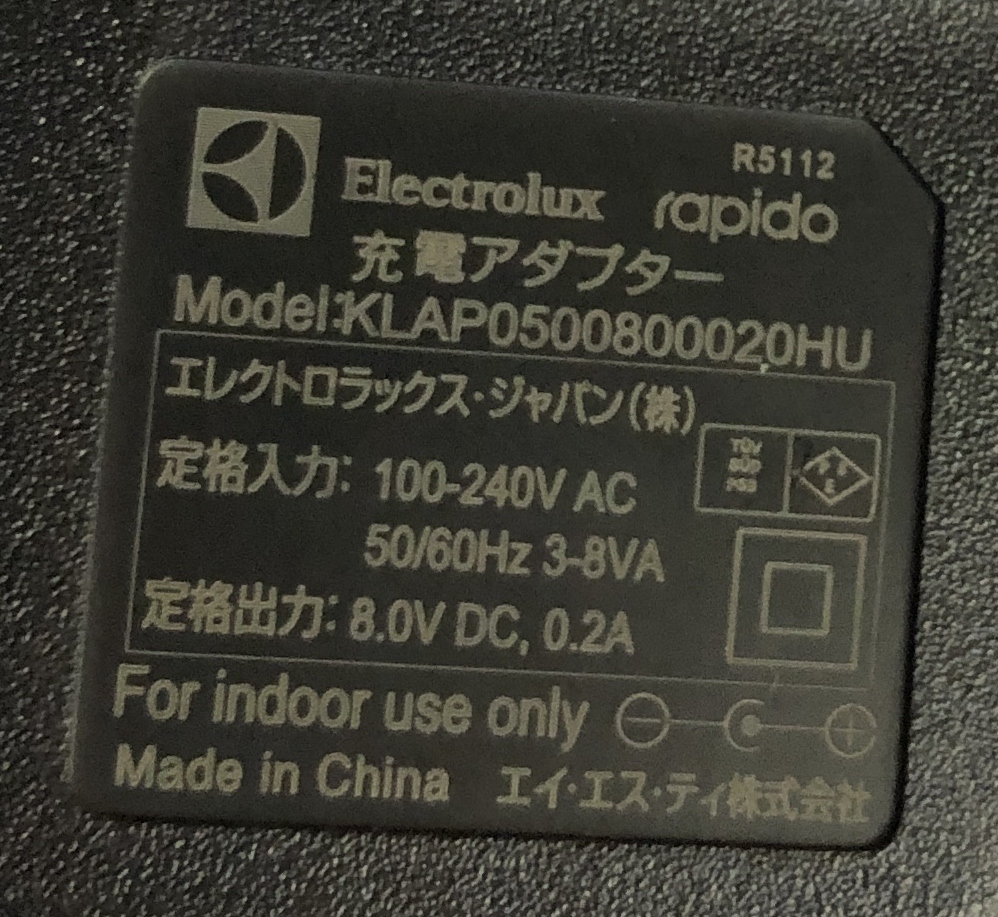 エレクトロラックス ACアダプター KLAP0500800020HU 8V 0.2A
