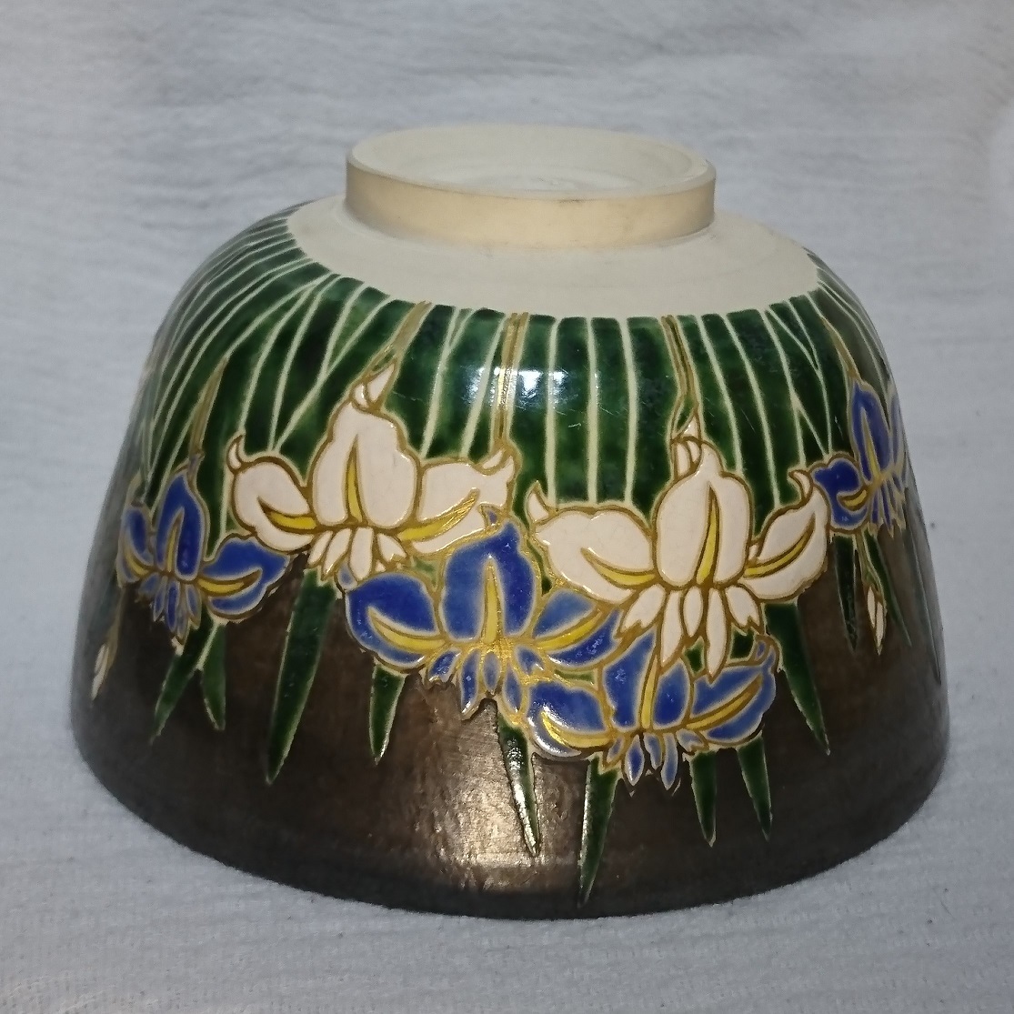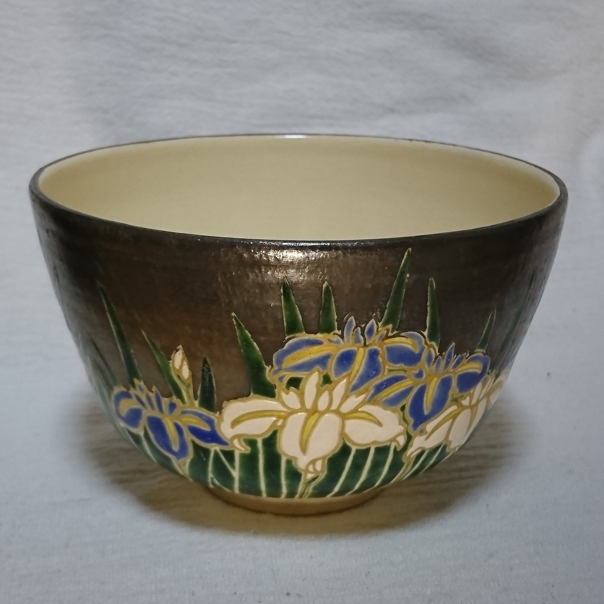 【最終値下げ】YYK52 山川巌造 色絵茶碗 銀菖蒲(共箱)【新品】