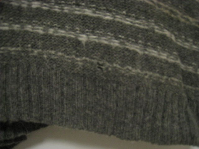 ■状態:USEDです。前面、右肩あたりと左裾あたりに1センチ程の穴があります。写真をご参照ください。その他、全体的に毛羽立ちがあり、使用感がございます。