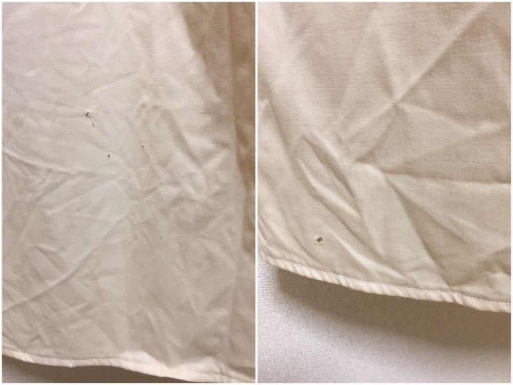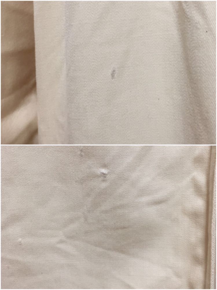 袖や裾などに、所々ひ細かい穴などのダメージありますが、まだまだ使っていただけるコンディションです。