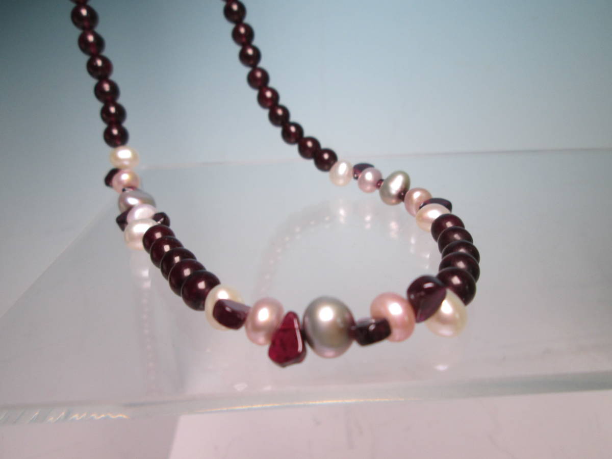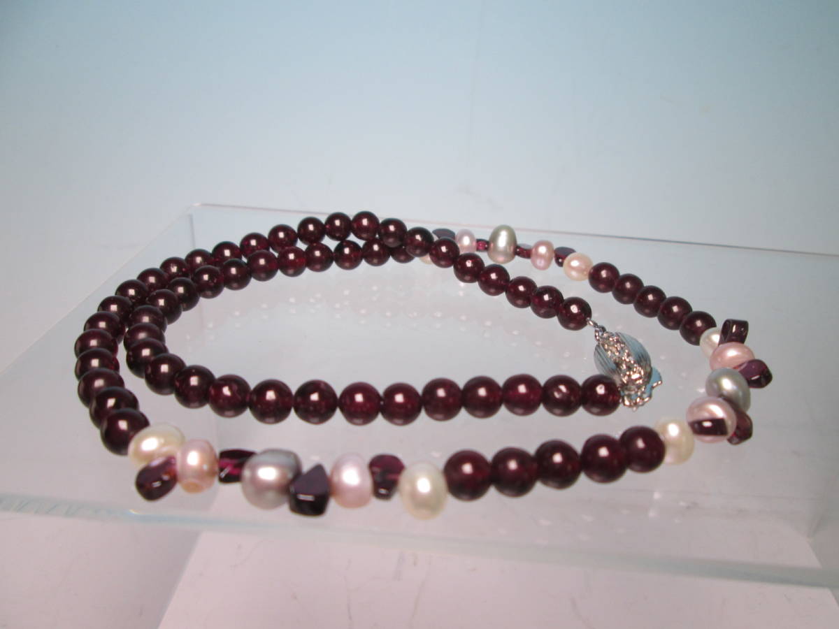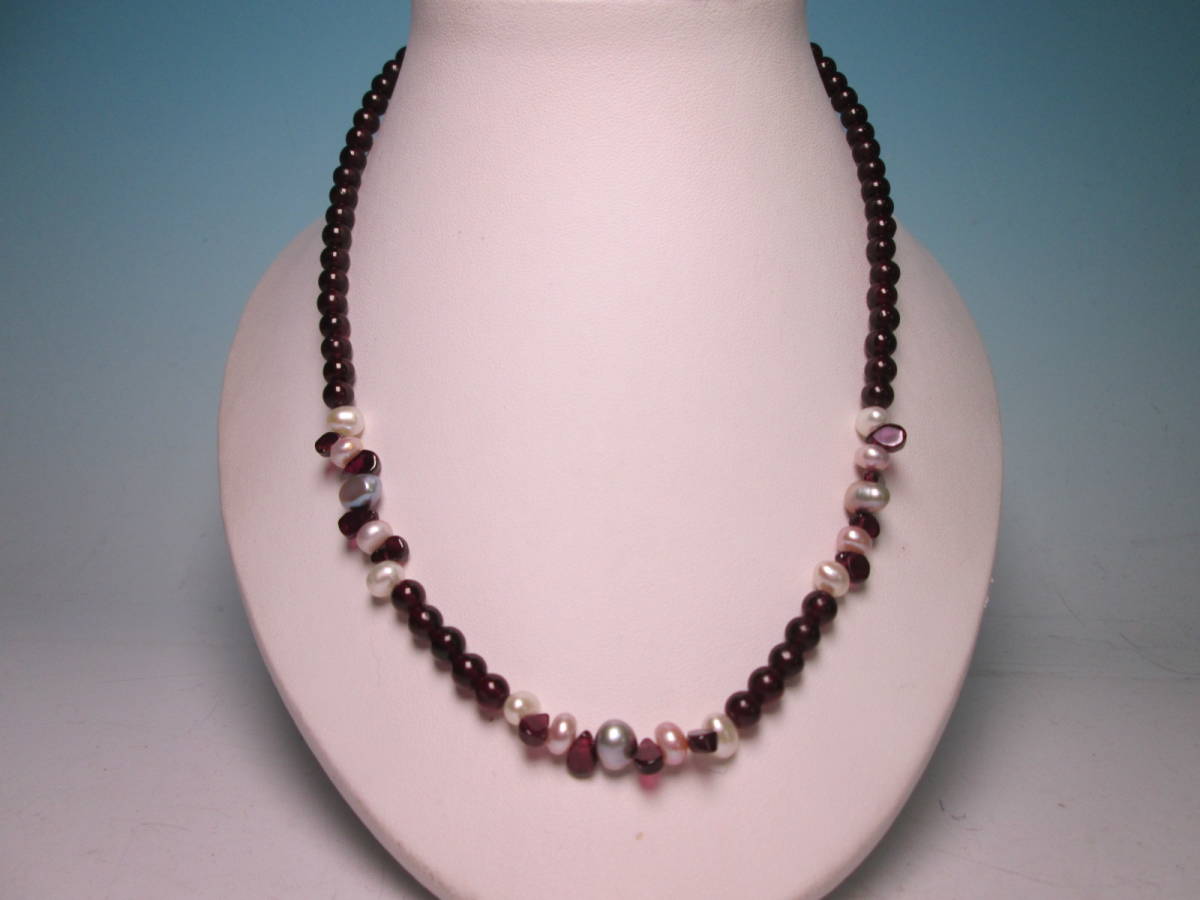 ☆SILVER ガーネット&淡水真珠のデザインネックレス 34g ケース付