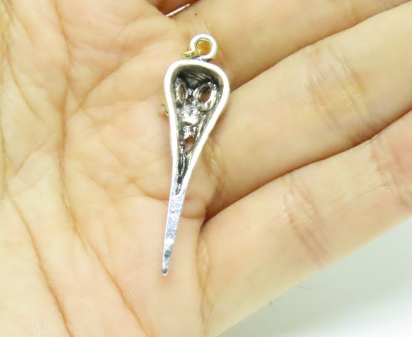 チャーム サイズ 約35mm×約10mm 素材 合金 色 銀色 シルバー 長さ調整可能な結び方がされている 約90cm 直径約2mmの牛本革紐付き。 革紐用ビーズ等でカスタムしても面白いです。 画像と実物は若干色が異なる可能性があります。 神経質な方はご遠慮下さい。