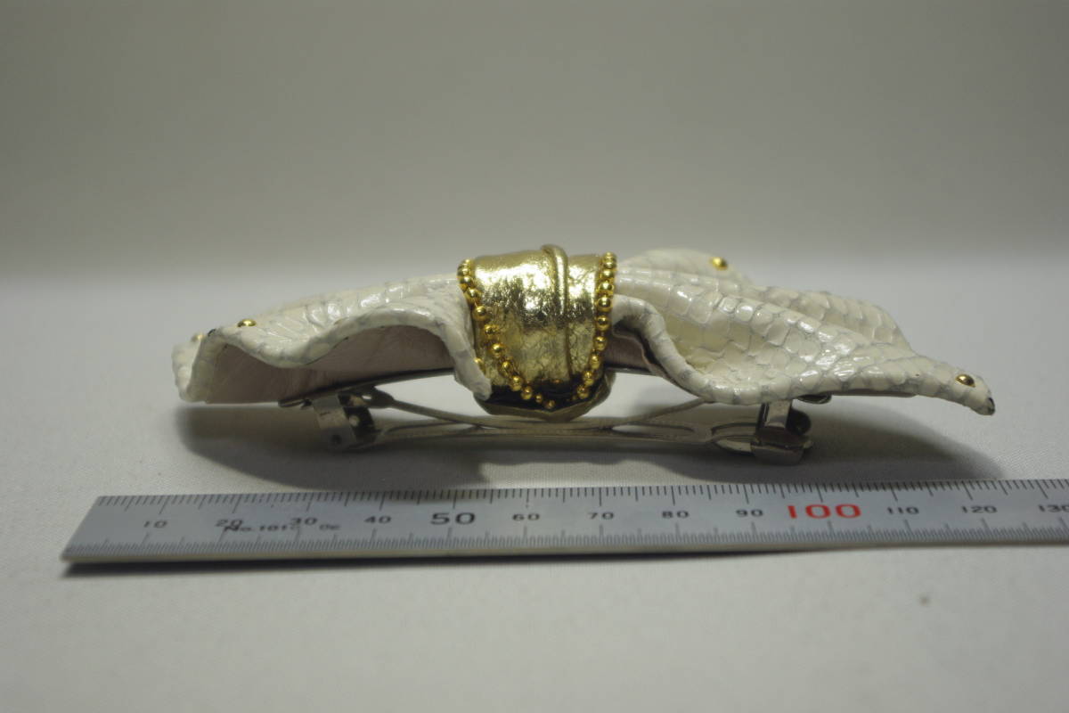 バレッタ 革製 白系 未使用品「おかあさんのお針箱」00200033
