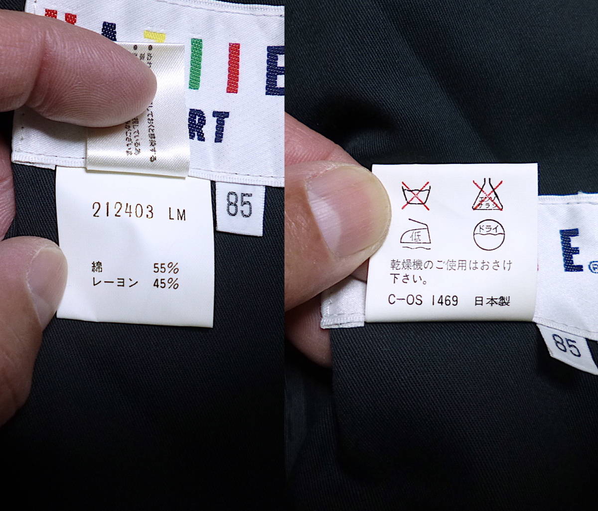 | 実寸サイズ | ウエスト(平置き計測後×2)およそ85センチ、ヒップ幅およそ57センチ、モモ幅(股の辺り)およそ39センチ、スソ幅およそ22センチ、股上(フロント部分のウエストから股のキリカエまで)およそ30.5センチ、股下(股のキリカエからスソまで)およそ93センチ。(たるみを無くす為軽く引っ張る感じで計測しています。多少の計測誤差はご容赦願います。) |
