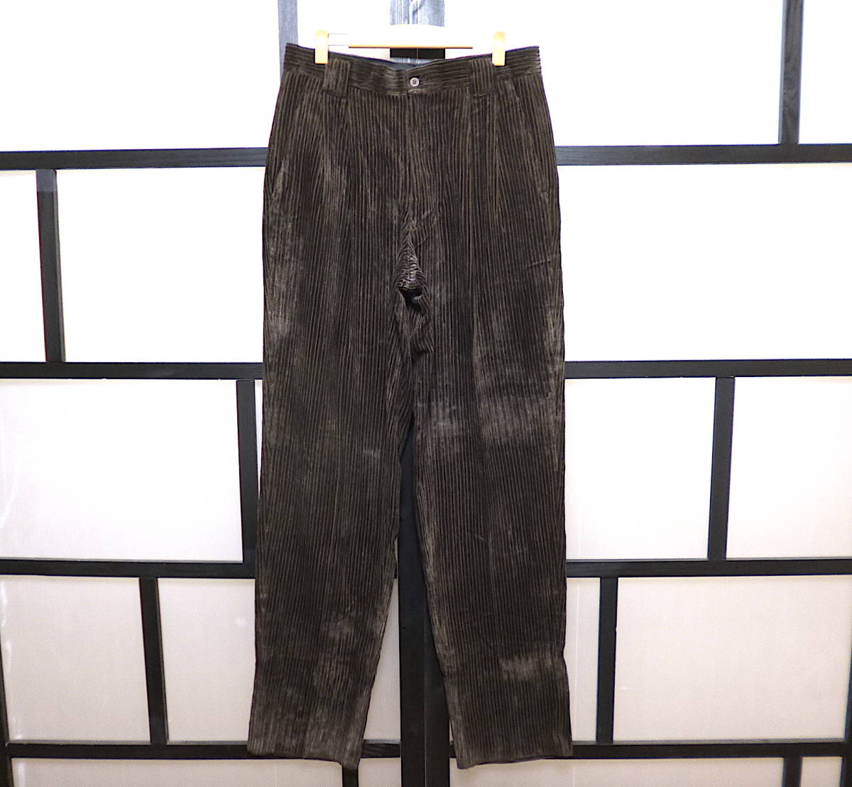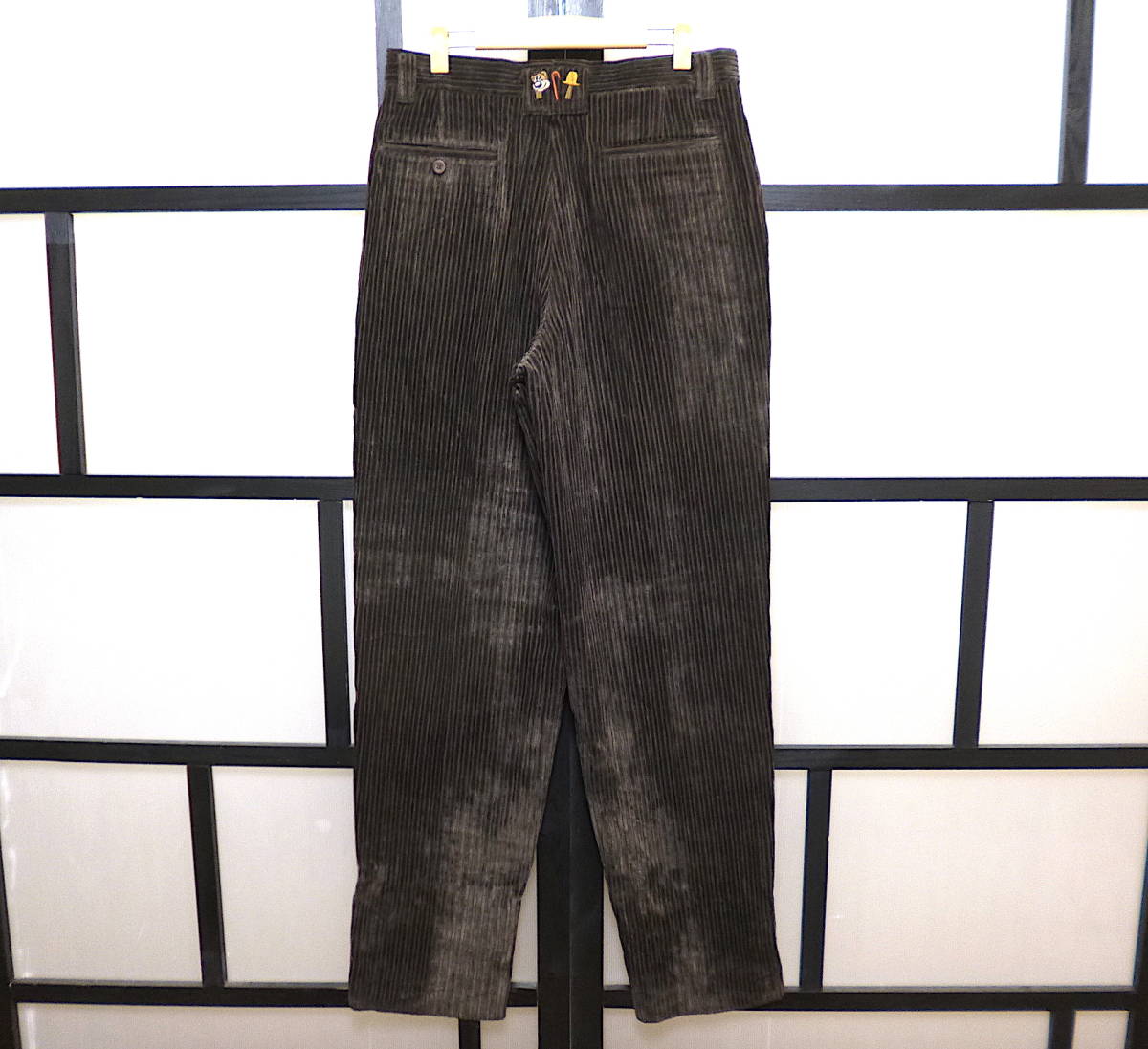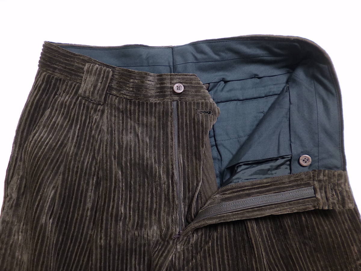 | コメント | 全体的なデザインはベーシックな感じで、フロントはジッパーフライ、ツータック、シルエットはゆったりなストレートになります。バックのベルトループ部分に刺繍が入っています。フロントのヒザの辺りまでキュプラと思われる薄手な裏地付き(写真4枚目)。尚、スソは縫われていません(写真8枚目。ロックミシン仕上げになっていますのでご自分でスソ上げしていただく感じになります)。予めご了承下さい。他にもバジエのアイテムや、その他いろいろなアイテムを出品しています。よろしければご覧ください。 |