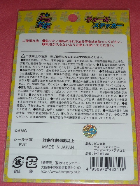 ☆商品説明☆ ご覧いただきありがとうございます^^ ピコ太郎のウォールステッカーです。と~ってもかわいいですよ♪ 大きさはタテ 約8.5cm、ヨコ 約7.2cmです。コレクション用として袋に入れたまま大切に保管していましたので、未使用でたいへんきれいな状態ですが家庭での保管ですのでご理解いただける方のみご入札をお願い致します。 ☆発送方法☆ 定形外郵便、ゆうぱっく ☆コメント☆ ノークレーム、ノーリターンでお願いします。ご不明な点がございましたらお気軽にお問合わせ下さい。他にもいろいろたくさん出品しております☆ 良かったらご覧下さいね*^^*