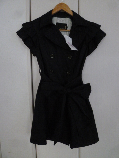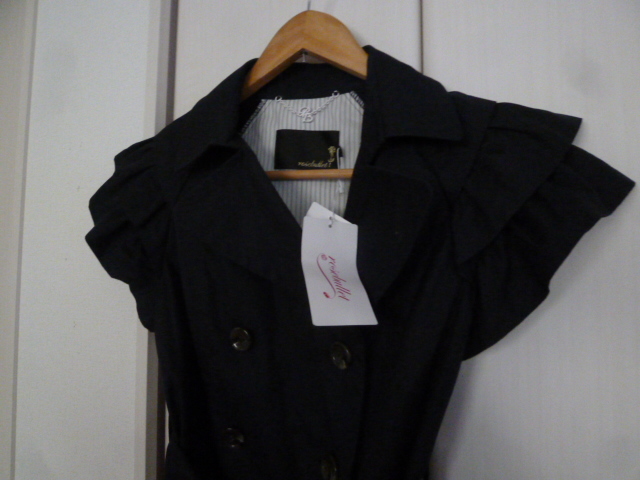 【新品】rosebullet/ローズブリット○紺段フリル袖ノースリーブトレンチコート1ネイビーベストコートリボンベルトオンワード樫山○②JK115