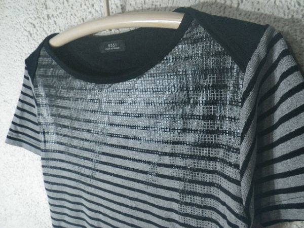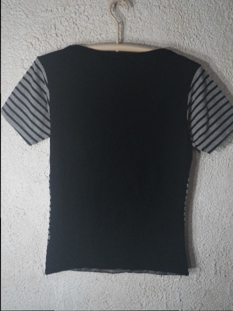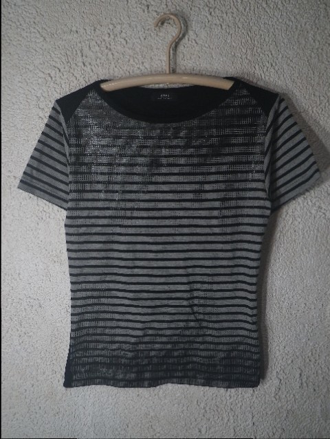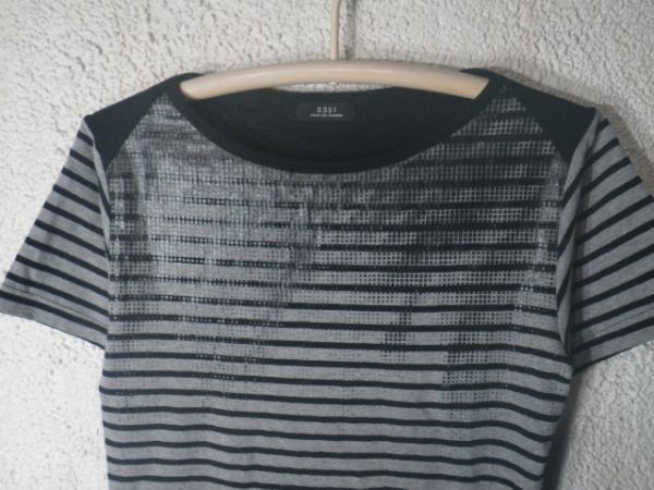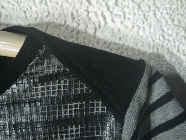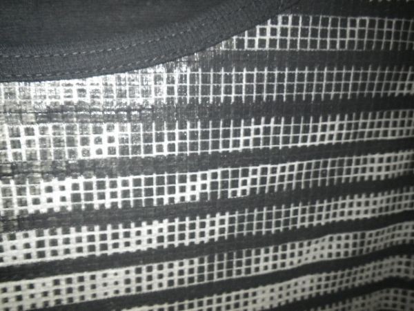 フロントはボーダーで、反射で分かりにくいですが 上と下付近に モザイクブロックのようなプリントが黒色でされております