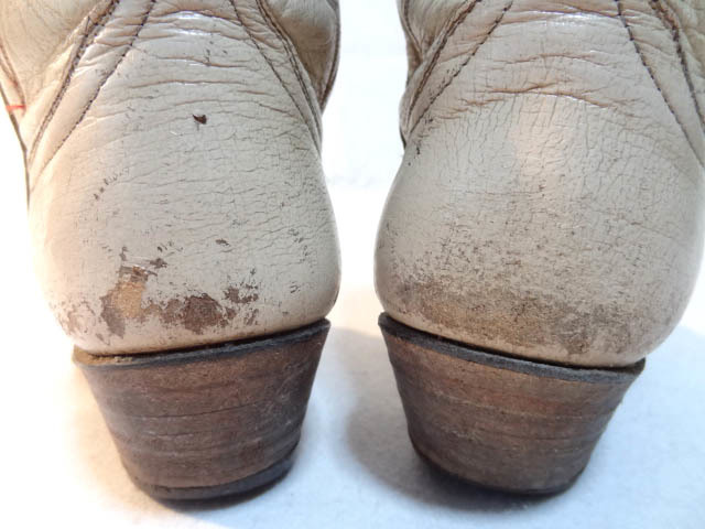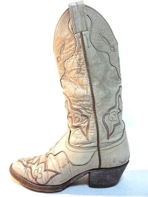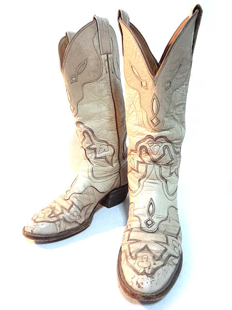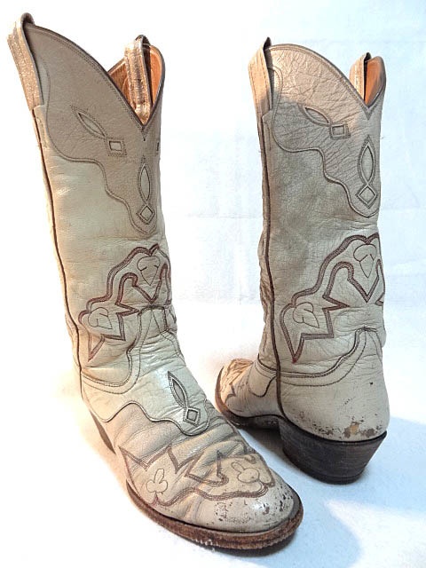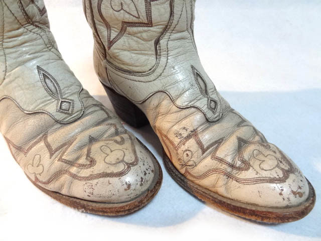 ビンテージ LARAMIE 希少 60S 70S オーダー ハンドメイド ウエスタン ブーツ トランプ 刺繍 ステッチ 模様 変形 デザイン 白 クリーム レア