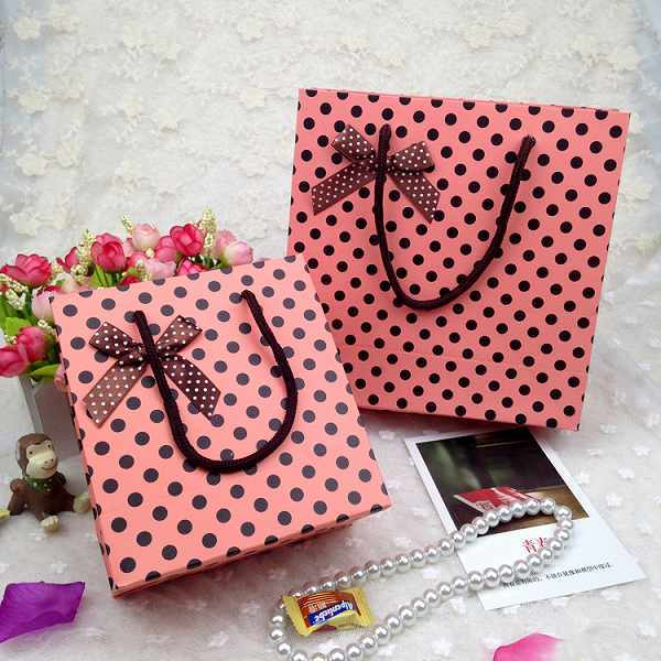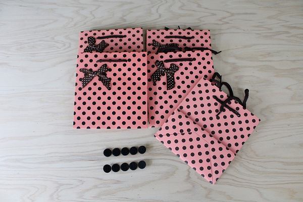 「bwn-a2」 ギフトバッグ リボン ドット ピンク 5枚セット マジックテープ付き ありがとう プレゼント ラッピング S