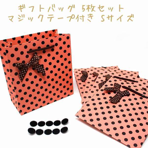 ギフトバッグ リボン ドット ピンク 5枚セット マジックテープ付き ありがとう プレゼント ラッピング S