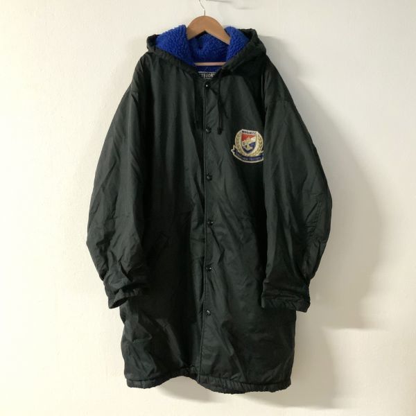 激レア 入手困難 当時モノ 90年代 Jリーグ 横浜マリノス ビッグロゴ 内ボア ベンチコート メンズ フリーサイズ ブラック コレクター