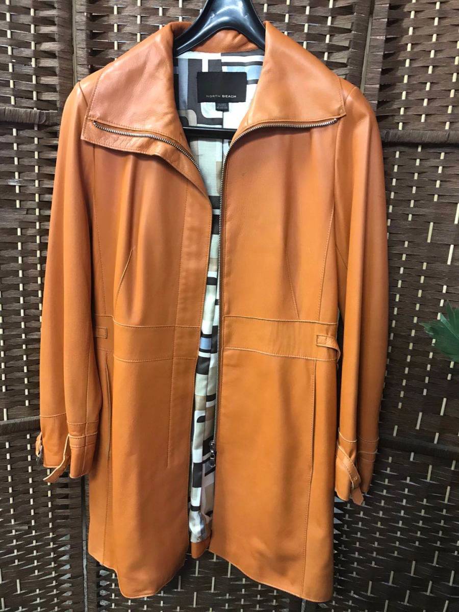 NORTH BEACH レディース中・長セクション スリムフィット レザージャケット(M)55 85-94-155