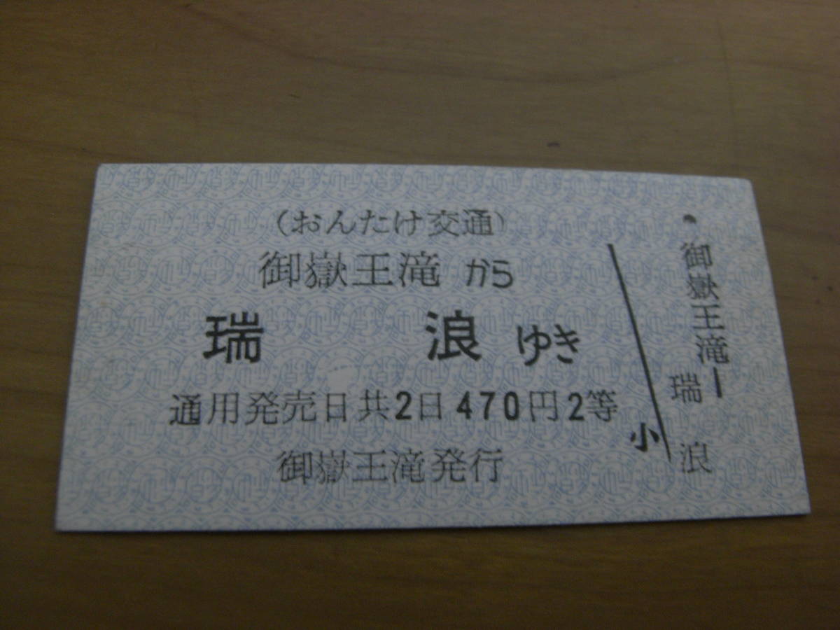 おんたけ交通国鉄連絡乗車券 御嶽王滝から瑞浪ゆき 470円 2等 御嶽王滝発行