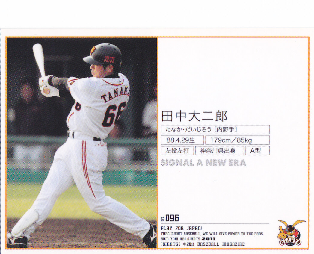 BBM2011読売ジャイアンツ G096 田中大二郎 神奈川県小田原市 富士見小学校 東海大学附属相模高校 巨人