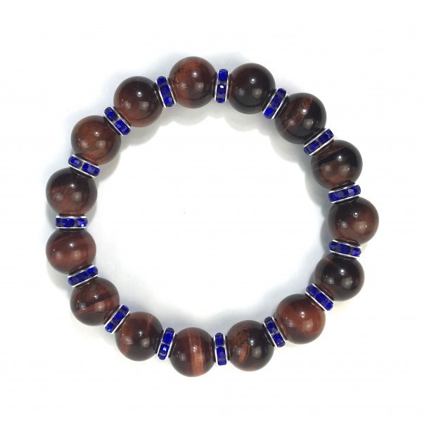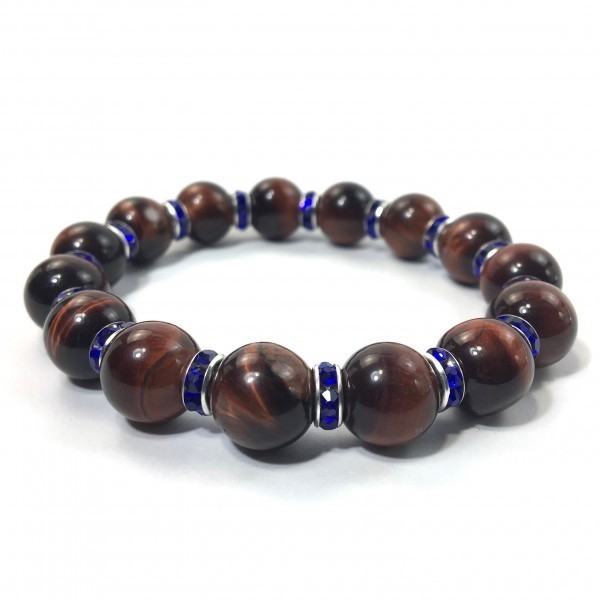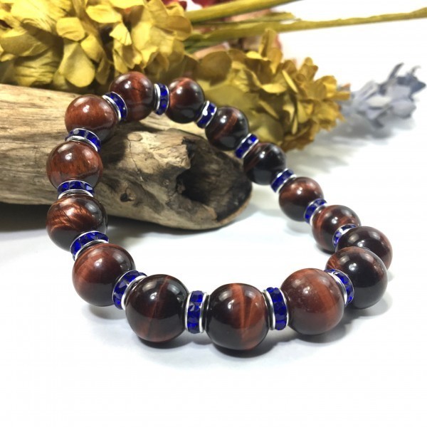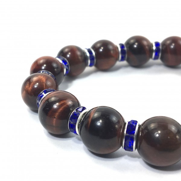 レッドタイガーアイ パワーストーン ブレスレット (ロンデル:D.ブルー) 12mm メンズ・レディース 天然石ブレス