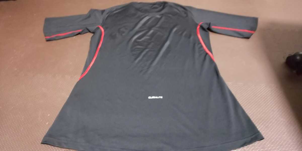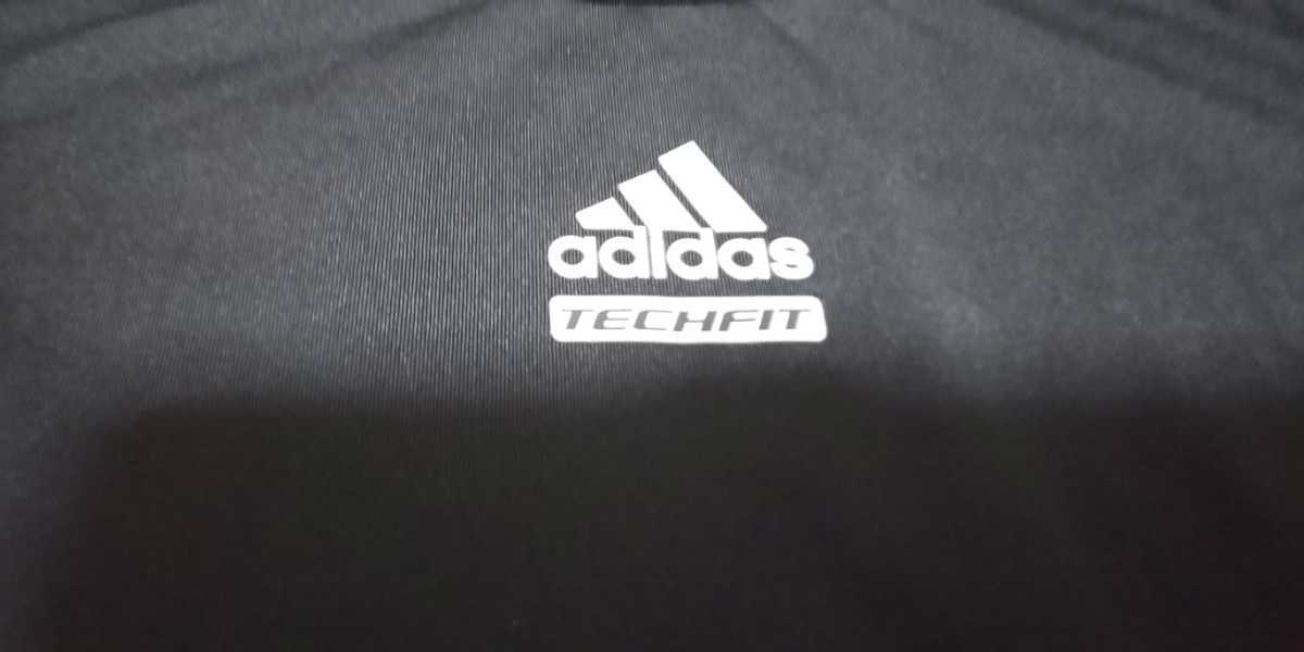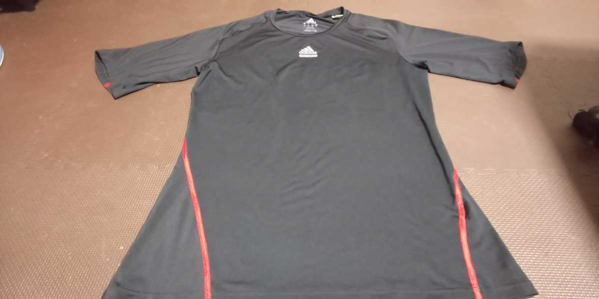 adidas黒、赤、シルバー半袖ストレッチトップス