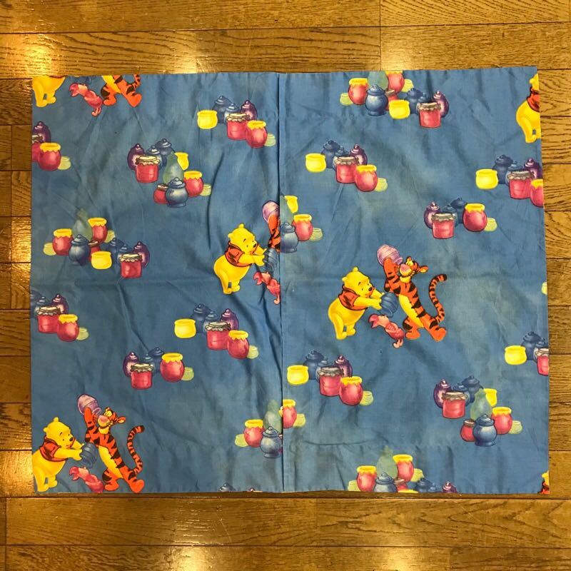 【j072】ヴィンテージシーツ ピローケース 67×82 キャラクター ディズニー プーさん リメイク用生地 布 アメリカ買付 ビンテージ 送料無料