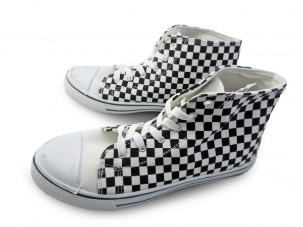 1円~2330-106新品AAAミッドカット/レースアップスニーカー26㌢チェック柄♂