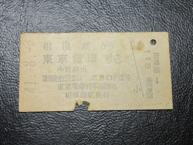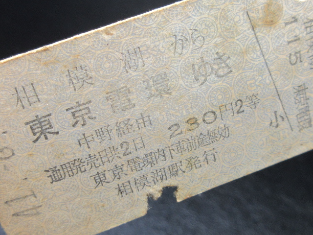 ~ ★国鉄乗車券・硬券『昭和41年8月3日・相模湖から東京電環ゆき「脇紫印」乗車券』キップ切符・レトロ・アンティーク・レアコレクション★JNR1195 ~