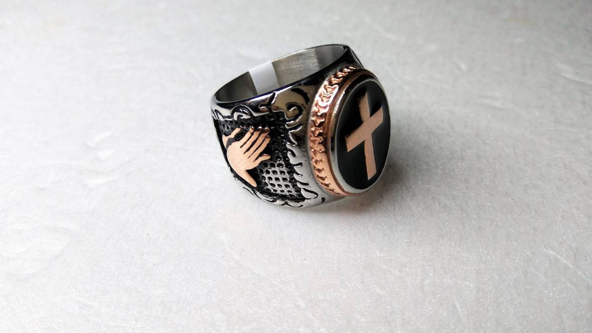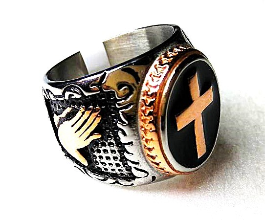 オヤッ?!必ず人目を引く、十字軍のようなリング(メッキです)です!
