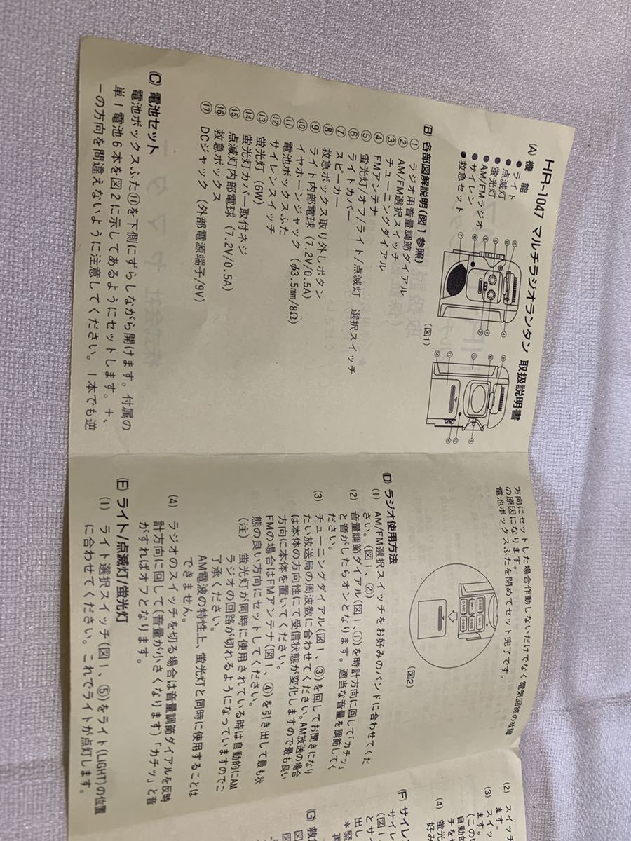 商品説明 ◆未使用◆マルチラジオランタン◆A-454 未使用ですが、経年経過しております。乾電池は付属しておりません。 外部電源端子があります。(別売) 電池を入れて全て動作確認をしました。 テレビの1から3チャンネルはアナログのため使用できかねます。 発送サイズ100 店頭に並んでいるような完璧を求められる方の入札はご遠慮ください。 神経質な方、細かい指定をされる方は御遠慮くださいませ^_^ 画像のカラー、濃淡などはパソコンにより現物と違う場合がございます。 思っていた色ではなかったなどの場合は返品は受けられません。こちらの手違い等の場合は返品を受けつけますので、遠慮なくご連絡をくださいませ。 他にも多数出品中ですのでよろしかったらのぞいてみてください。 自己紹介欄も併せてご覧ください。 まとめての発送もできますのでお気軽にどうぞ! |