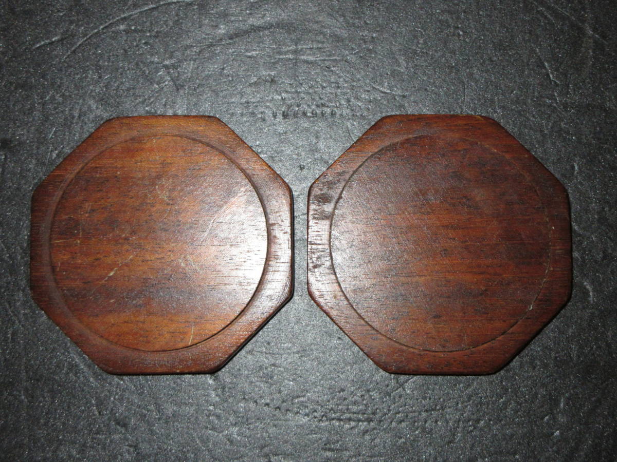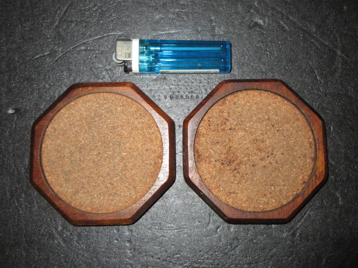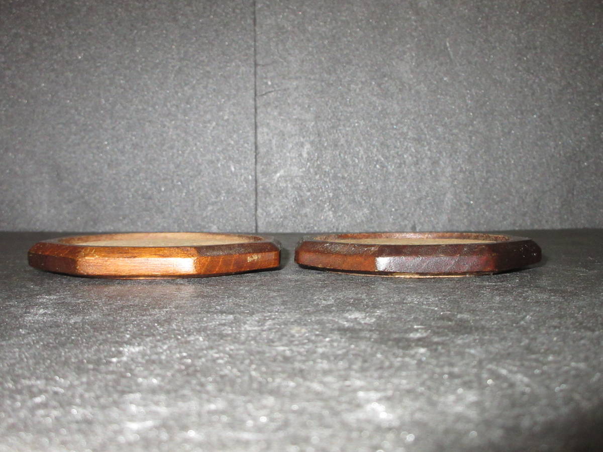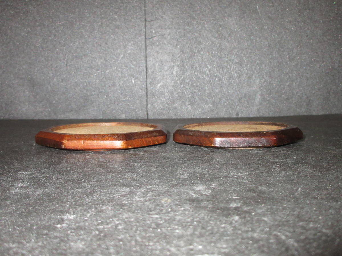【煎茶道具・酒器道具】 古い『天然木(自然木)とコルク』コースター(茶托) 2点(ペア) (幅最大10.3cm)