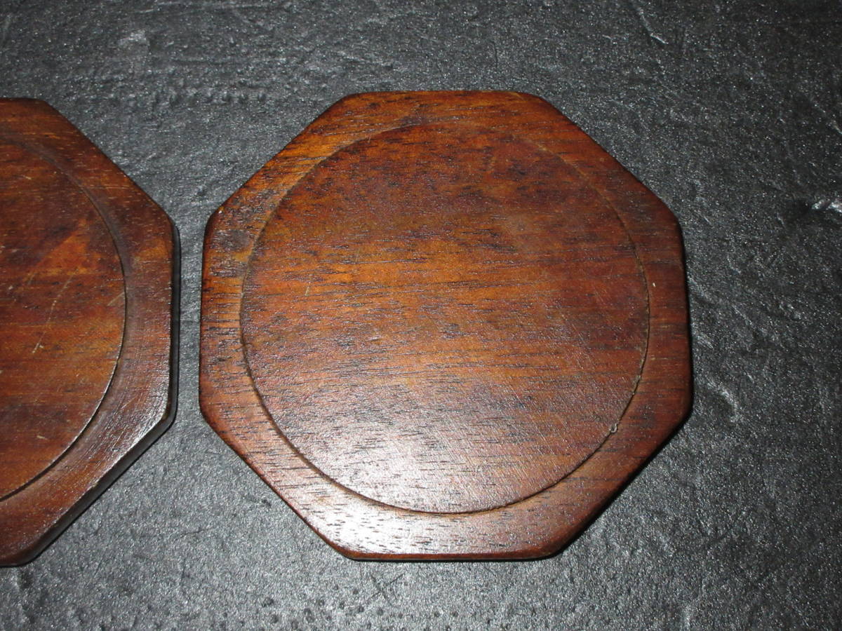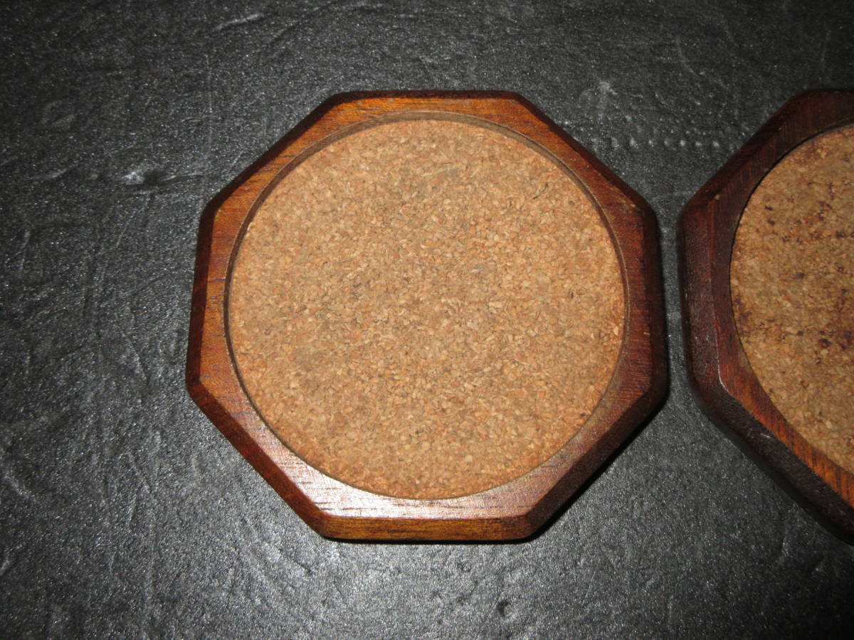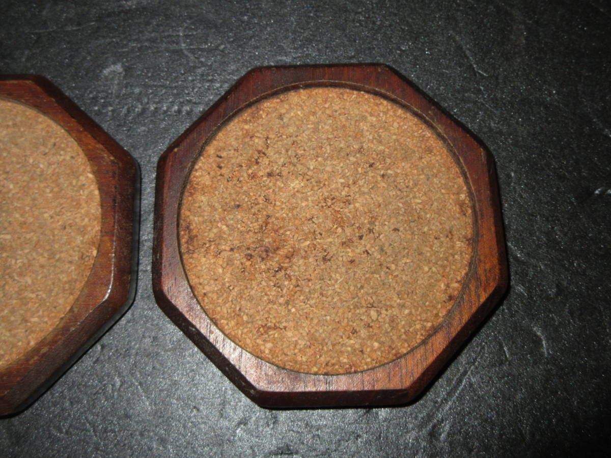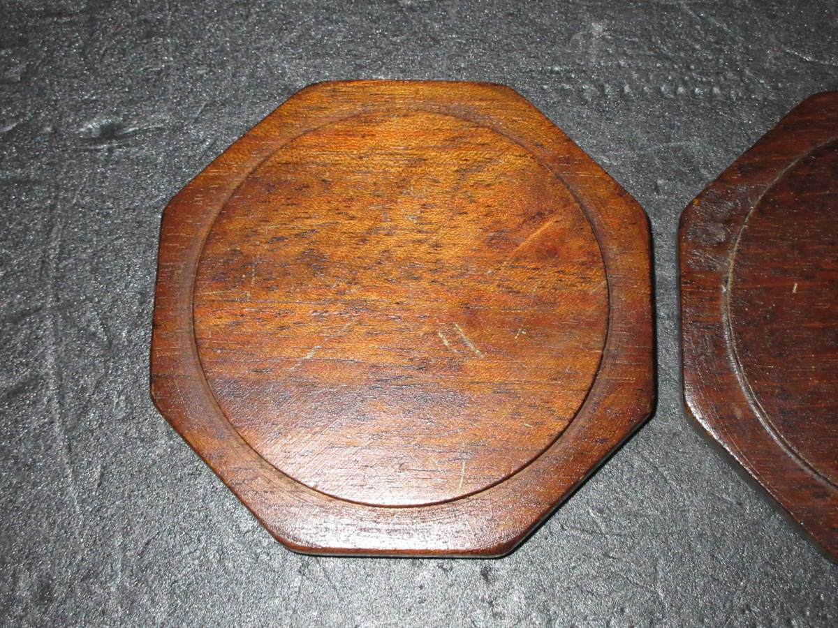 【煎茶道具・酒器道具】 古い『天然木(自然木)とコルク』コースター(茶托) 2点(ペア) (幅最大10.3cm)