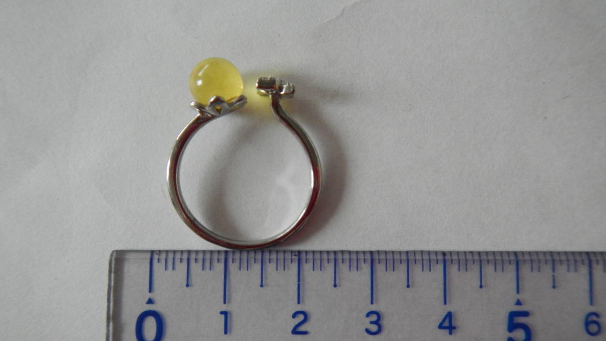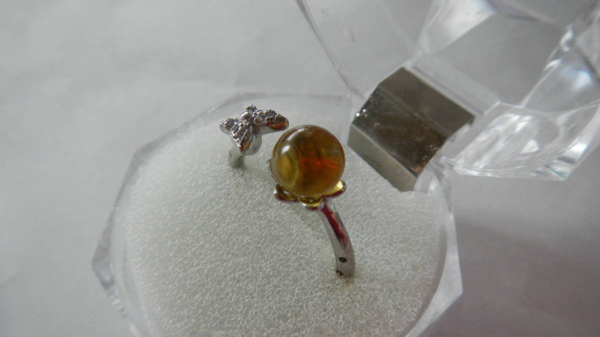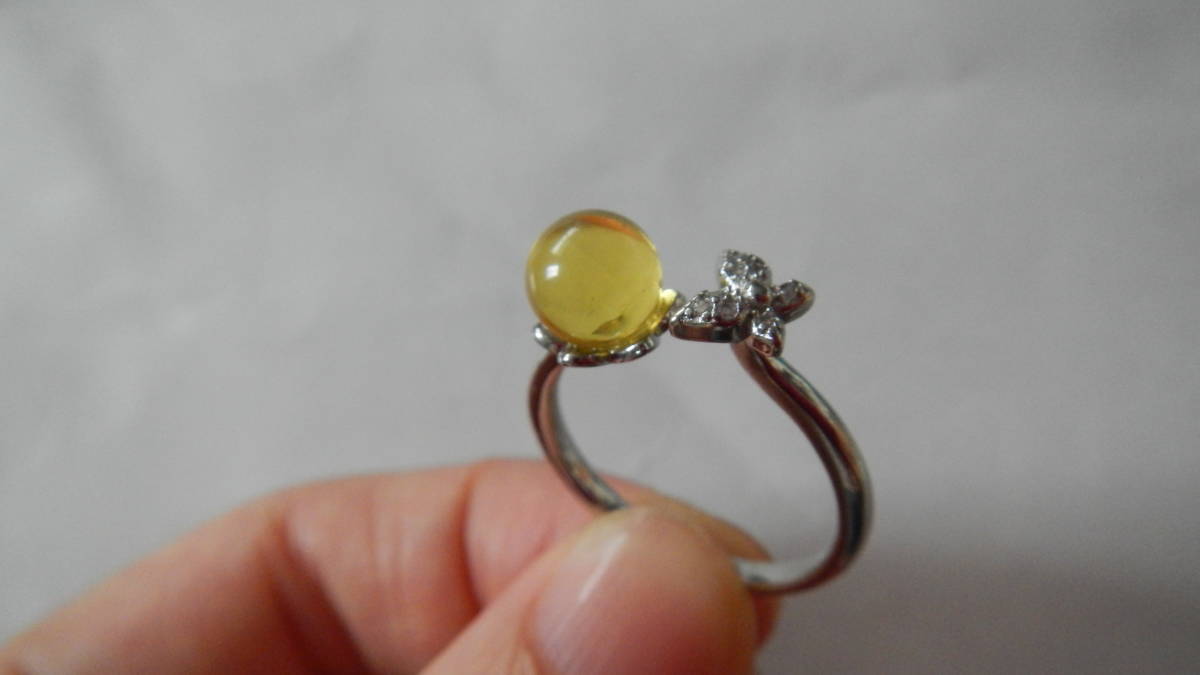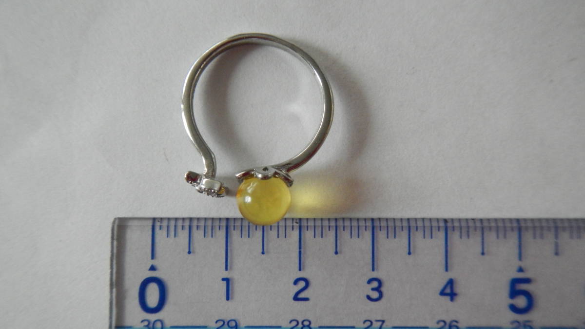 指輪 【管理番号18A】琥珀 レモン色 蝶 オシャレデザイン シンプル フリーサイズ リング アクセサリー 可愛い 綺麗系 サイズ調整可