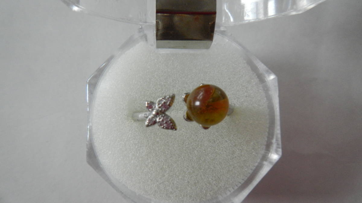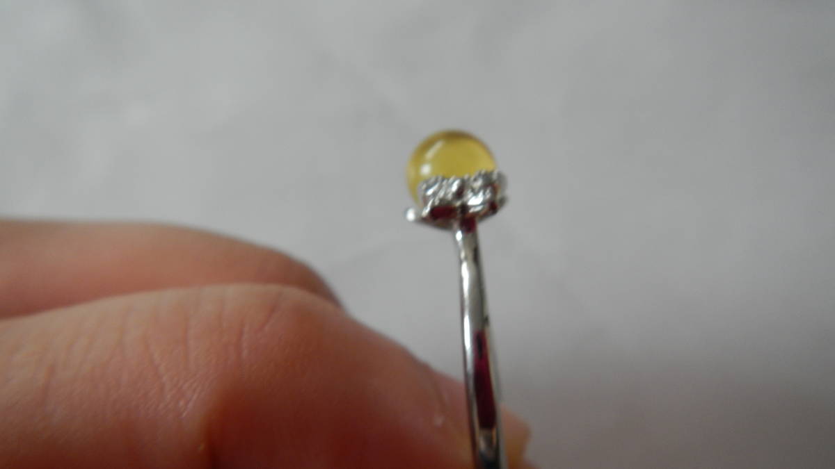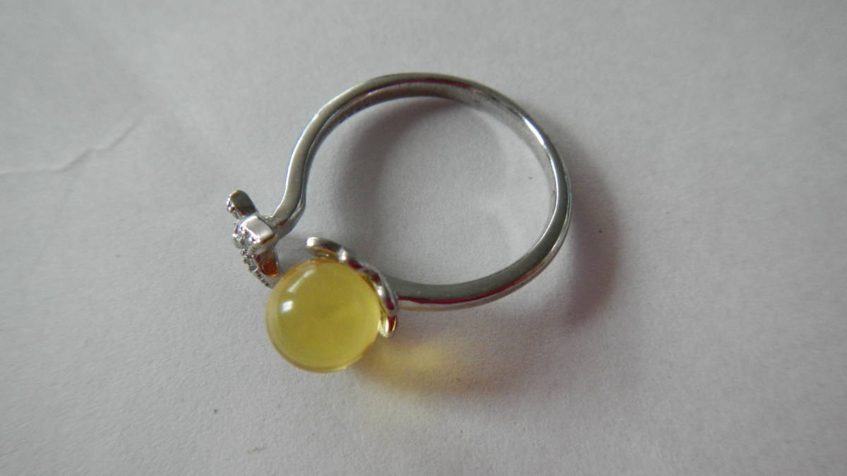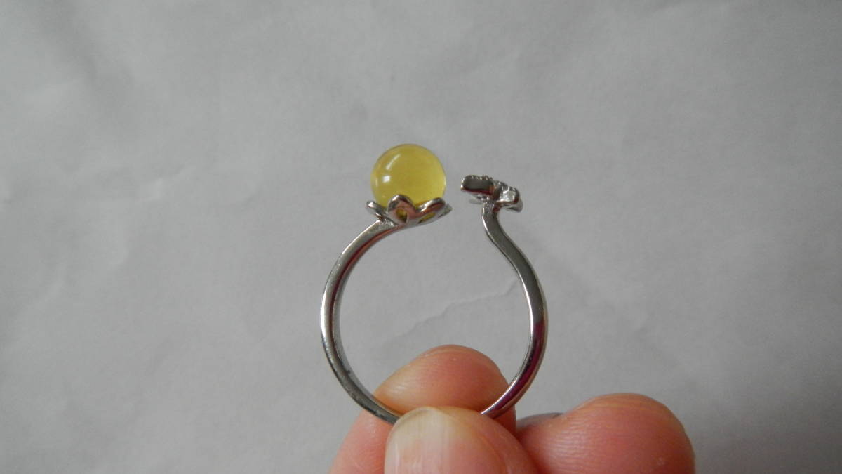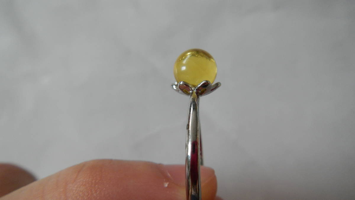 指輪 【管理番号18A】琥珀 レモン色 蝶 オシャレデザイン シンプル フリーサイズ リング アクセサリー 可愛い 綺麗系 サイズ調整可