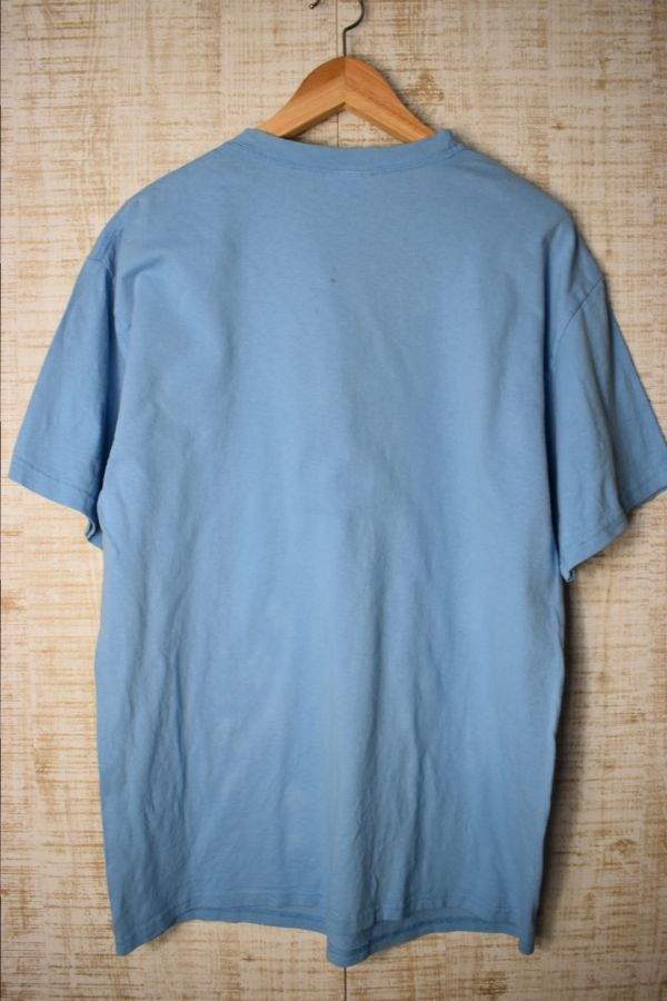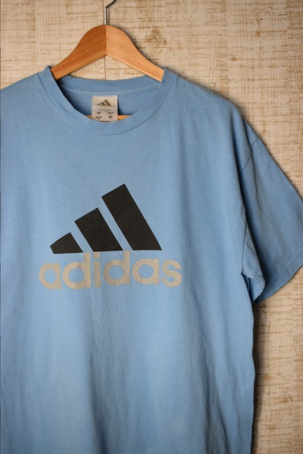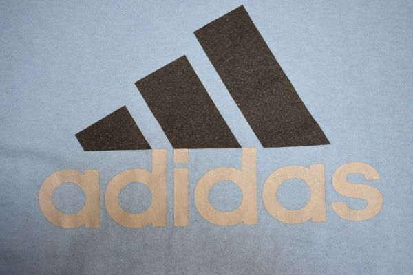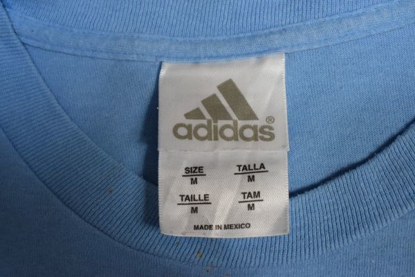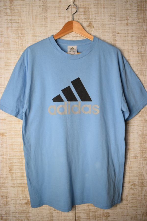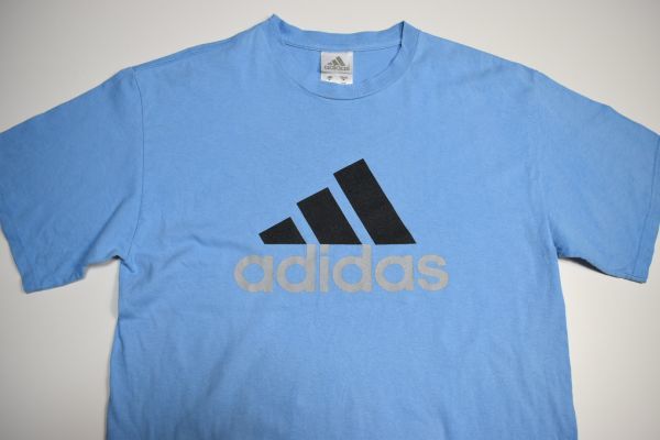 ●US USED adidas アディダス ロゴプリント Tシャツ スポーツ 水色ブルー【M】