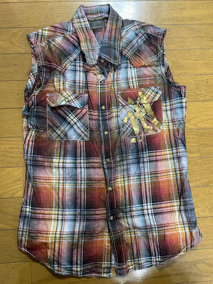 ◆美品 MCDMSION ノースリーブチェックシャツ USED加工 襟 ワイヤー入り スカルインディアン GOTCHA ガッチャ Mサイズです。