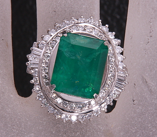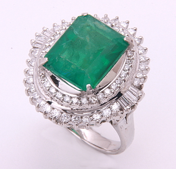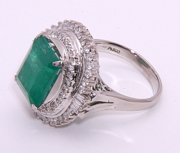 《質屋出品》Pt900★天然エメラルド6.59ct+ダイアモンドリング★C-4539