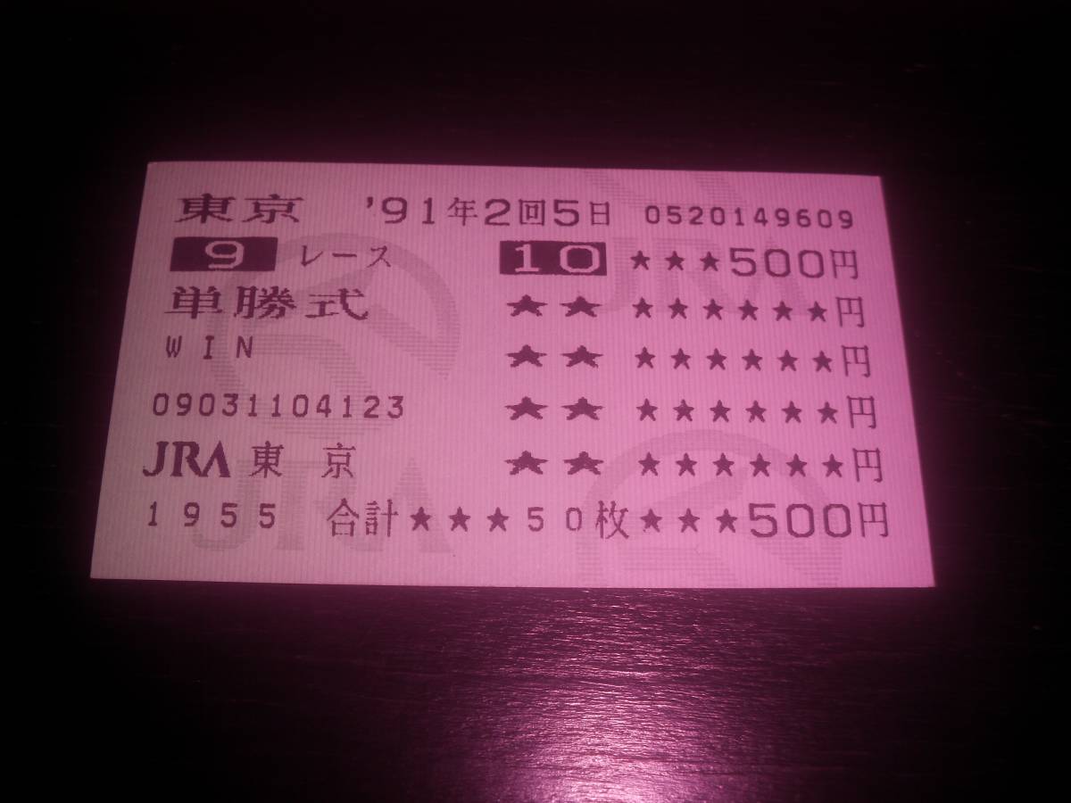 | 1991年 菖蒲S はずれ単勝馬券 『 イイデシビア 』 現地 です。 |