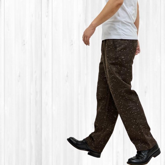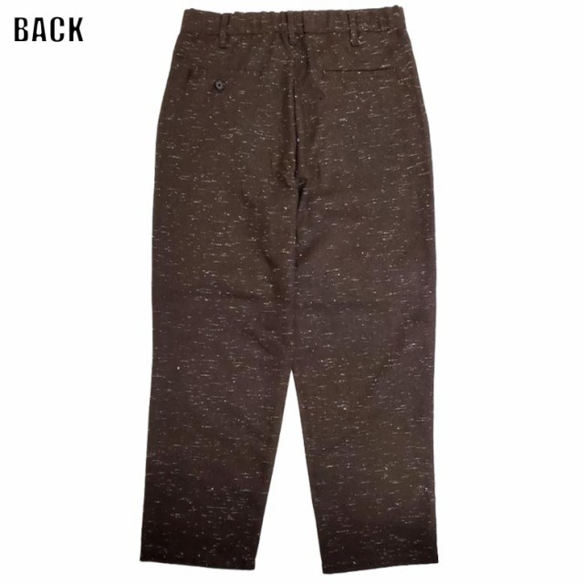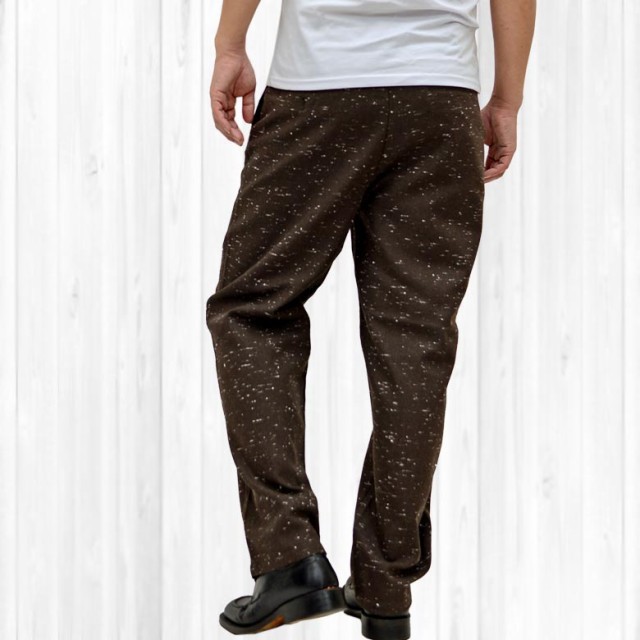 ナチュラルな風合いが魅力的なネップ糸を使用することで、どこか素朴でありながらも上品で表情豊かなパンツに仕上がりました。