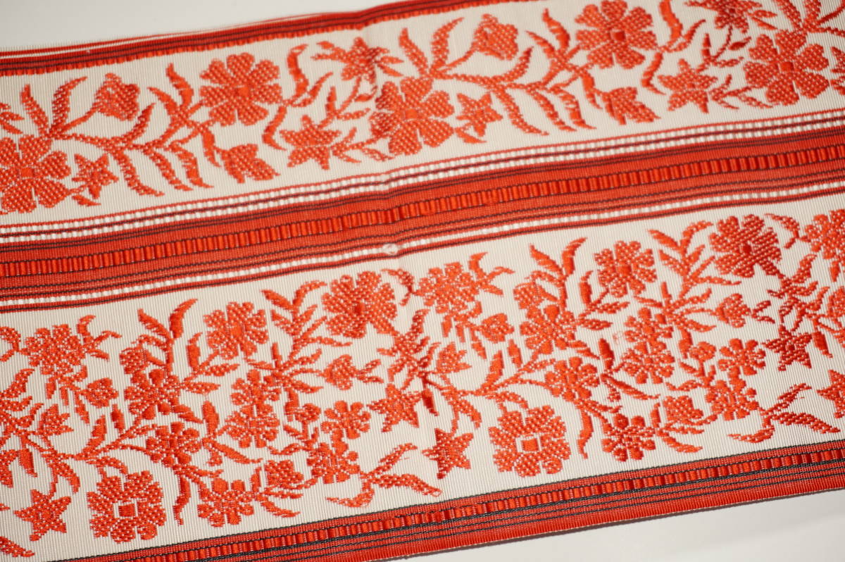 新品 絹100% 博多証紙つき。長さ約360cm。巾約14,9cm、織物のことですので、多少の瑕疵(織味的な意味)はあるかもしれませんが、博多証紙のついたものです