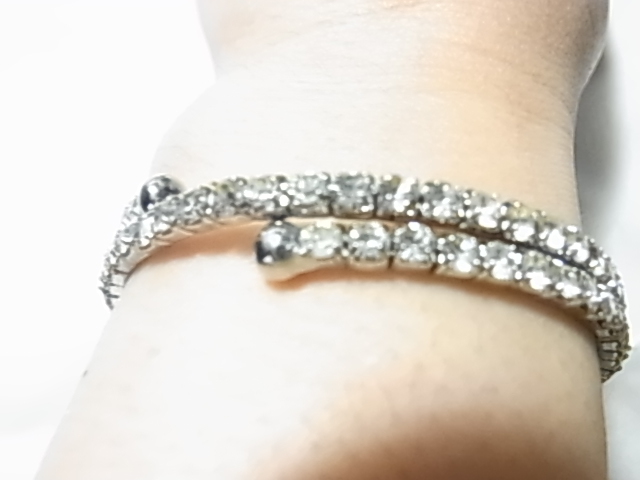 輝くラインストーン 全周煌めく 2連調に見えるデザインの素敵なバングルブレスレット▼