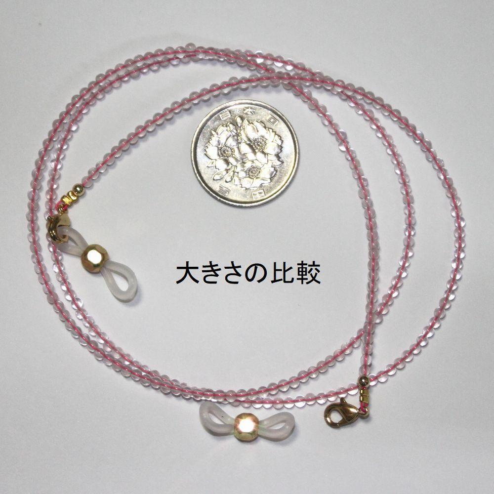 マスクホルダーorメガネチェーンorネックレス、 ローズクォーツ約2.2mm 長さ約63cm+シリコンパーツ マスクの置き場所に困らないオシャレに使えるマスクホルダーです。 ネックレス・メガネチェーン兼用に使えます。 金具はメッキです。