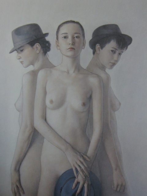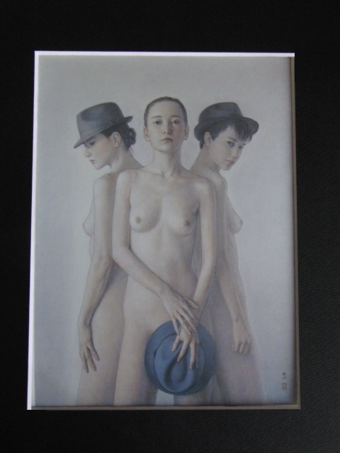 高塚省吾、【帽子が3つ】、希少な額装用画集より、新品額装付、状態良好、送料込み、sca