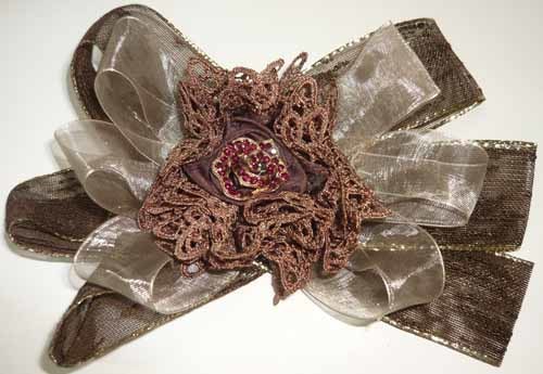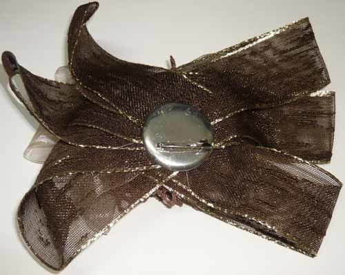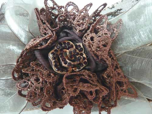 ボリューム有り!◆コサージュ/ブローチ◆レース&シフォン・リボン【ユーズド】茶系