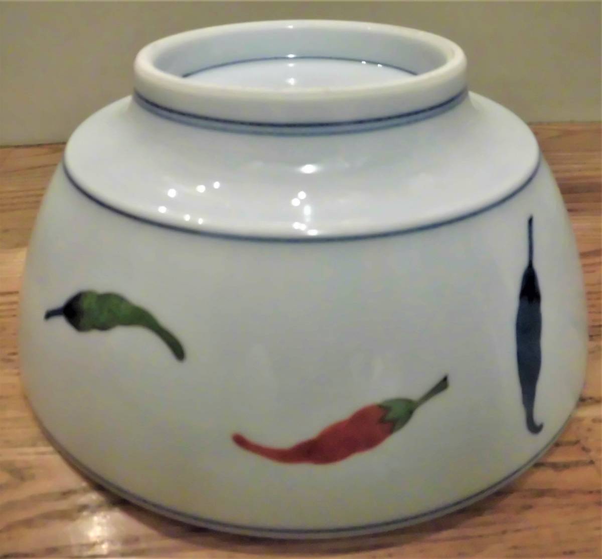 ☆唐辛子模様 白 中鉢 四季? 約18㎝径 高さ 約9㎝☆