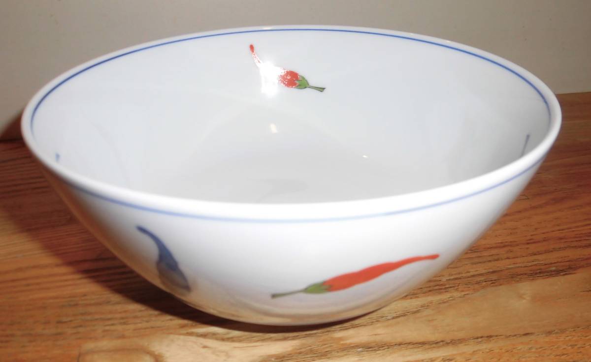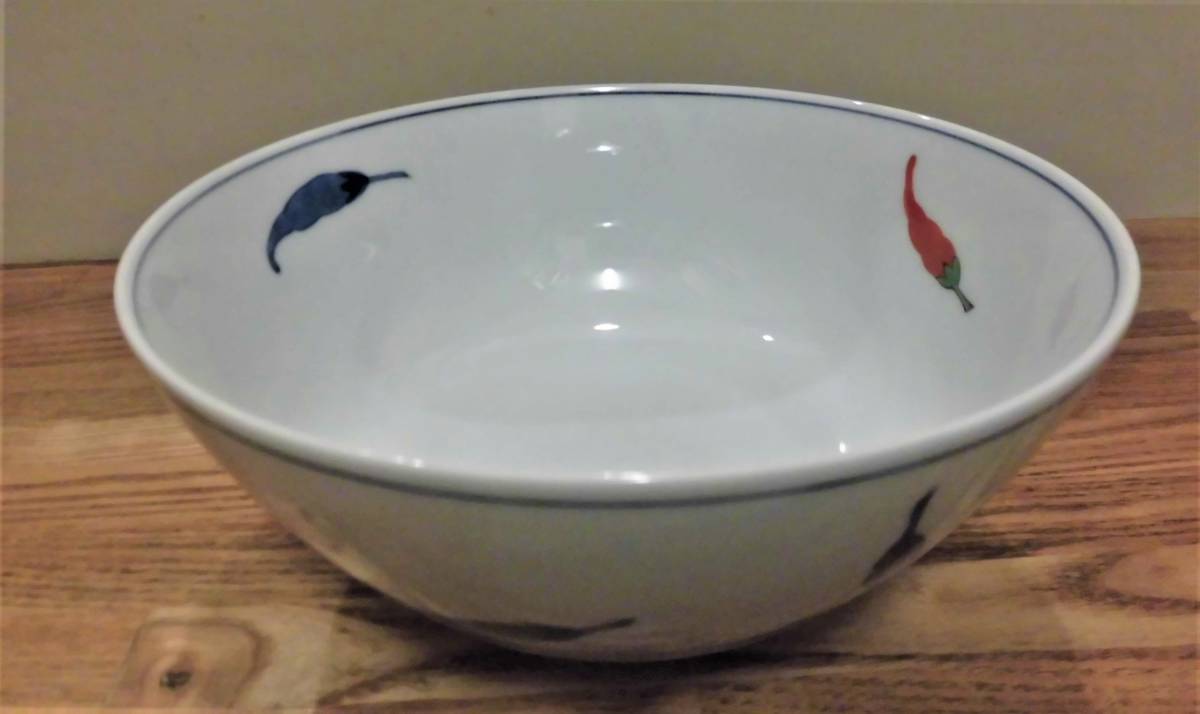☆唐辛子模様 白 中鉢 四季? 約18㎝径 高さ 約9㎝ USED品☆