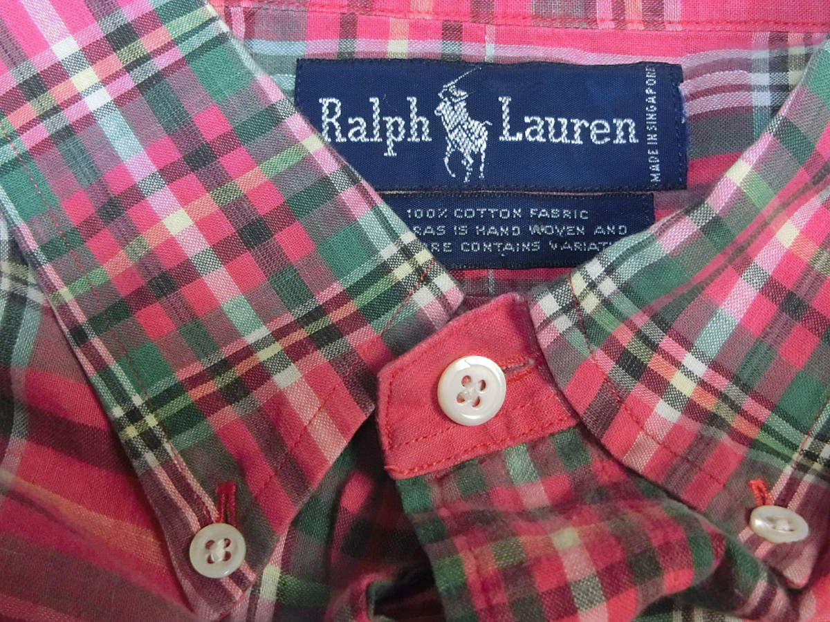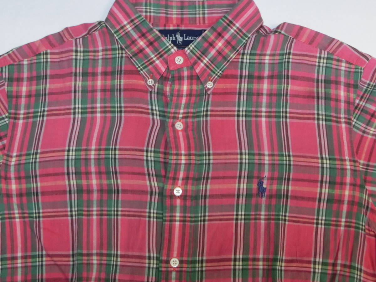 ラルフローレンの100%コットンチェックシャツです。中古の使用感はありますが程度は概ね良好です。サイズは肩幅、身幅、着丈それぞれ48×64×80㎝です。