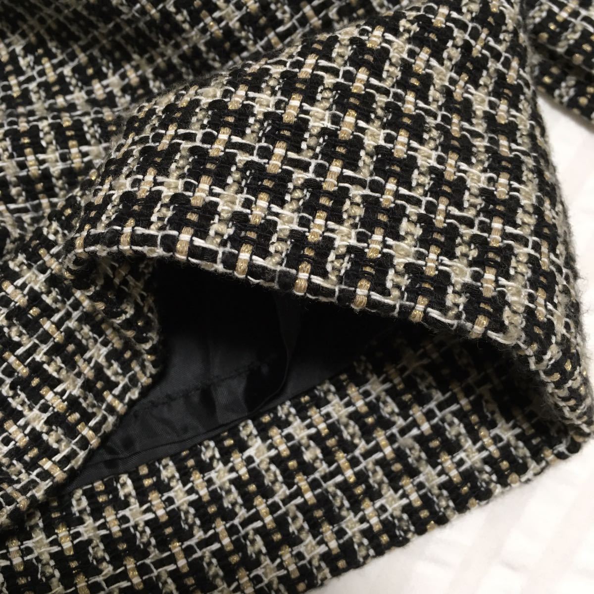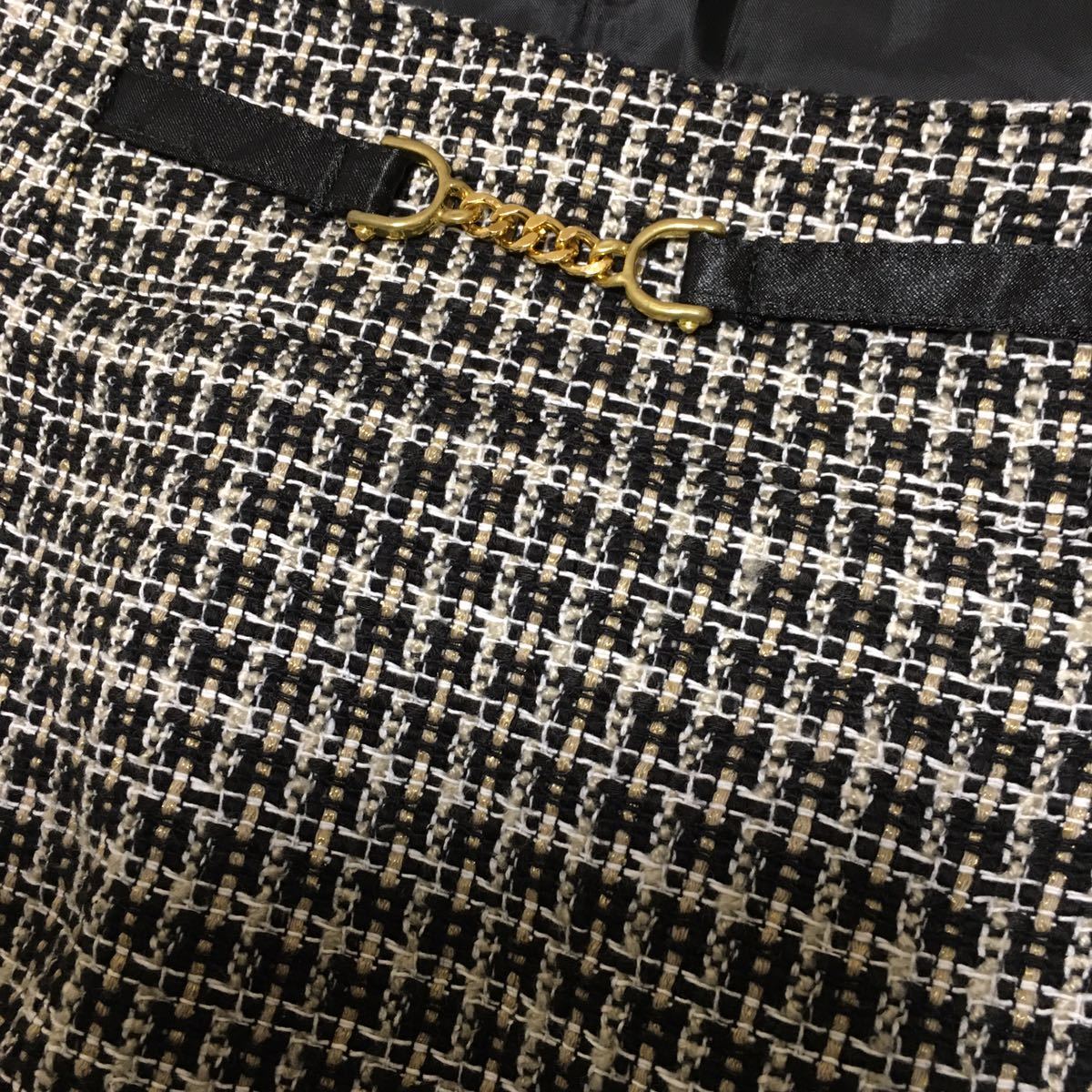 【色】黒、ベージュ、しろのツイード ウエスト部分テープは黒 金具はゴールド