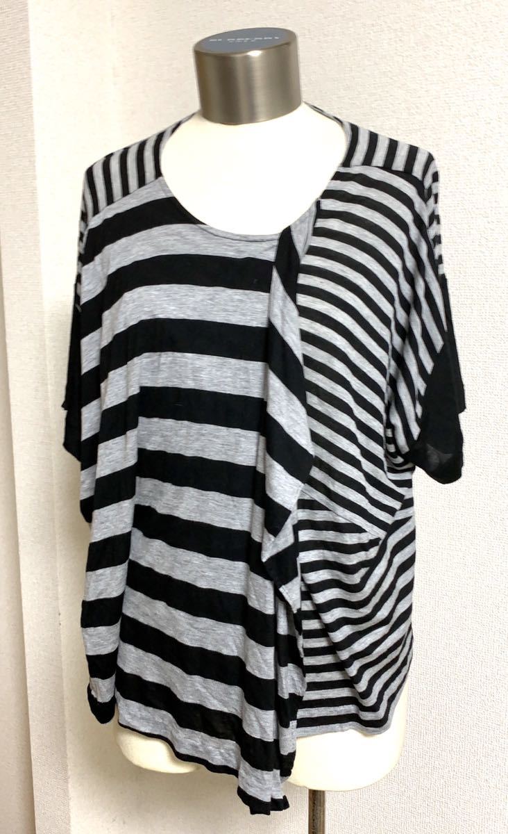 | 商品詳細 ■柔らかで肌触りの良いテンセル生地、ボーダーの切替がおしゃれです ■素材;テンセル100 ■サイズ表記; 実寸:cm 肩幅; 身幅; 着丈; 袖丈; 変形シルエットのため計測不能ですが、トルソーは9号です ■状態;usedですが特に記載するダメージありません。 |