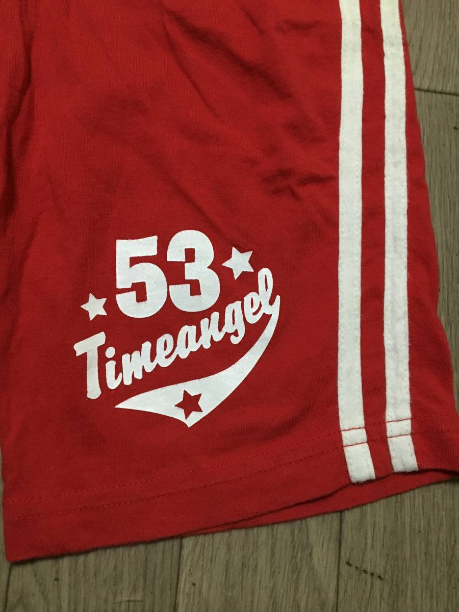 赤のハーフパンツで、両サイドには2本ずつ白のラインが入っていていい感じです♪