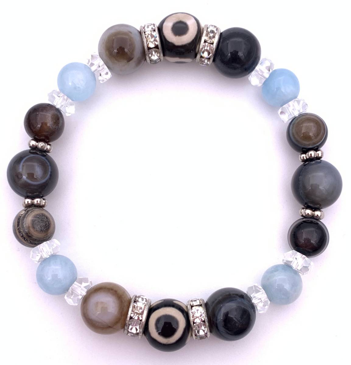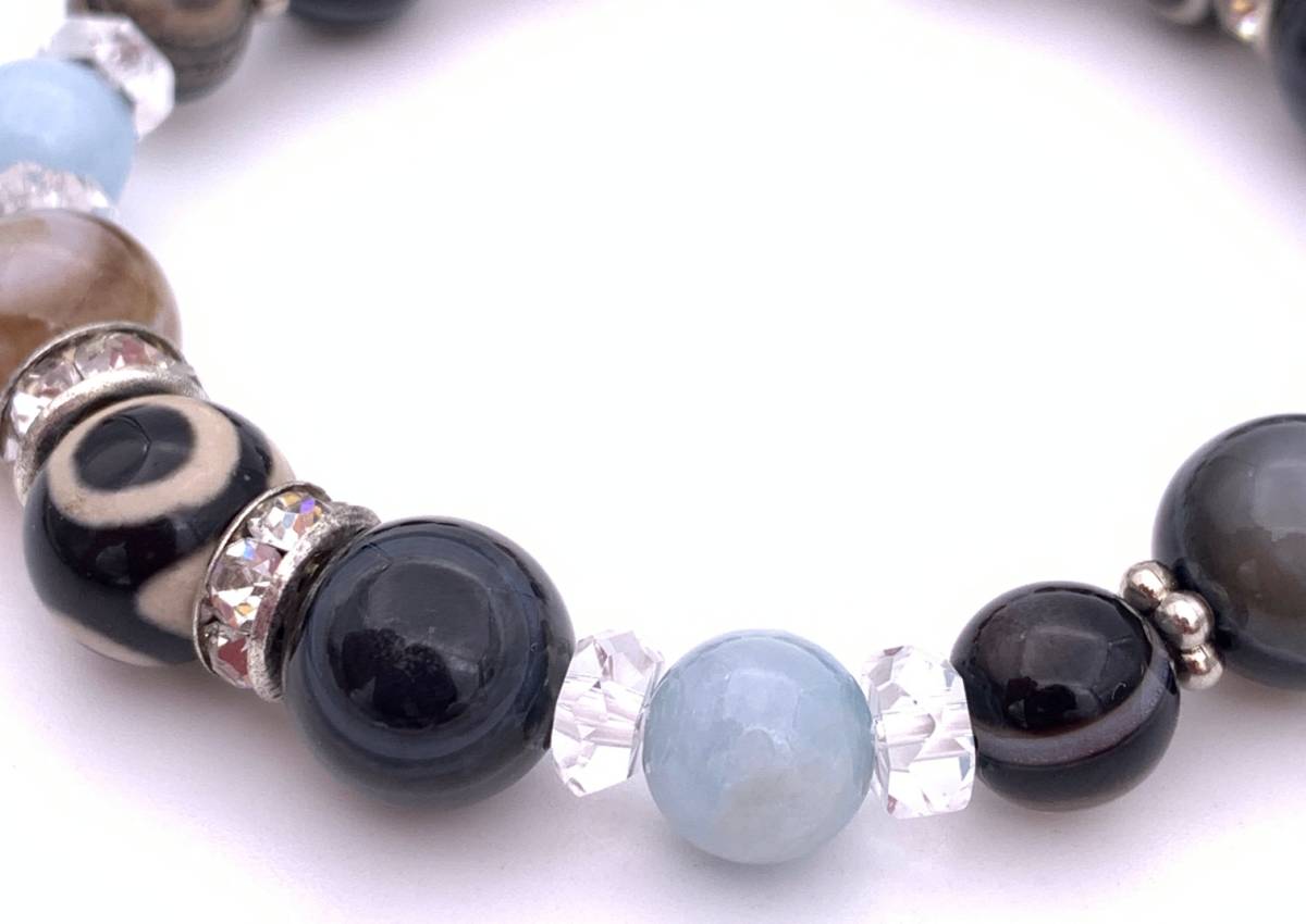 天然石三眼天珠&天眼石&アクアマリンのブレスレット