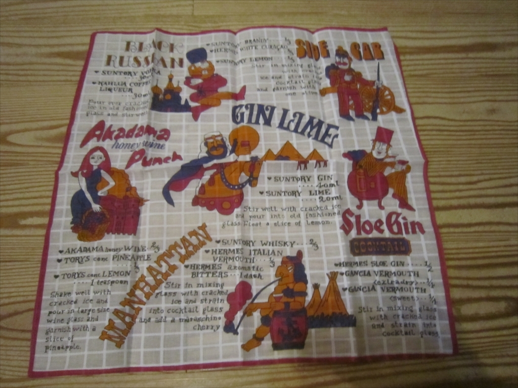 ハンカチ 非売品 新品未使用品 カクテル COCKTAIL handkerchief ビンテージ SUNTORY ノベルティ サントリー ロゴ レア 袋あり