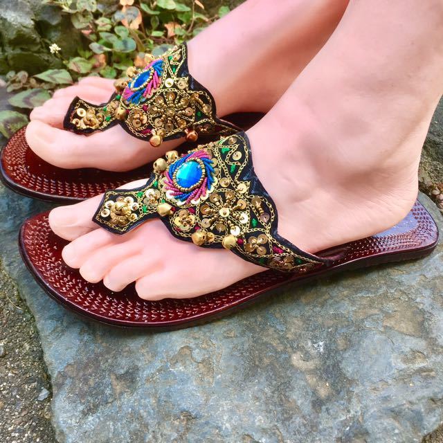 キラキラビーズと鈴が足もとを華やかにしてくれます。