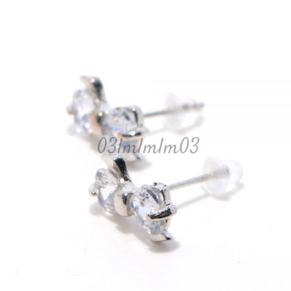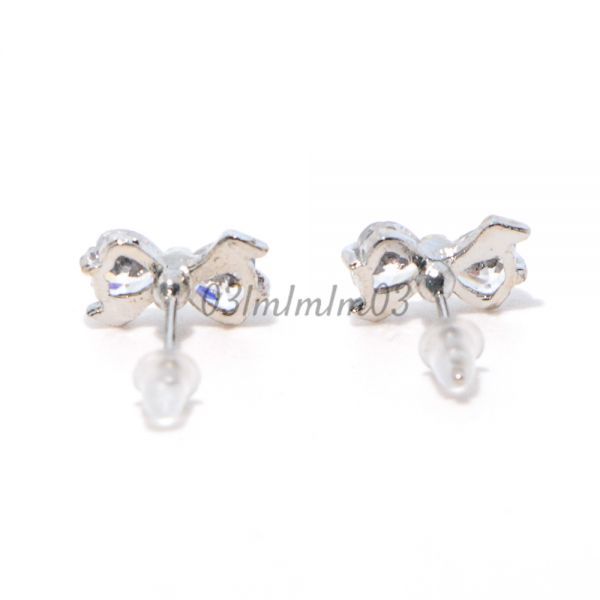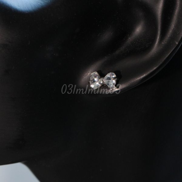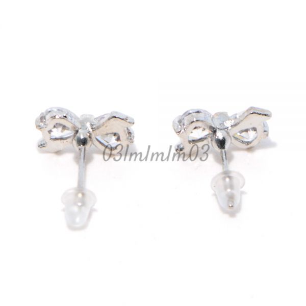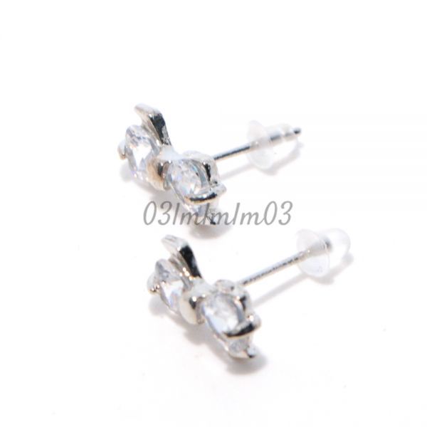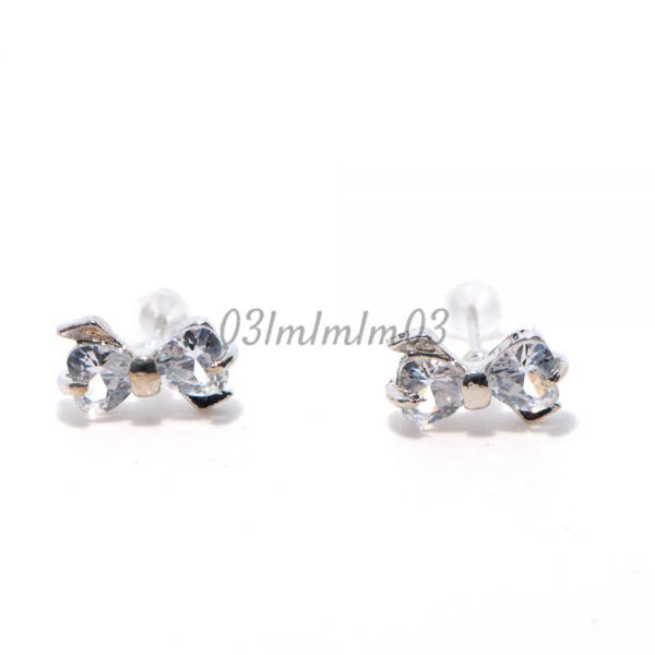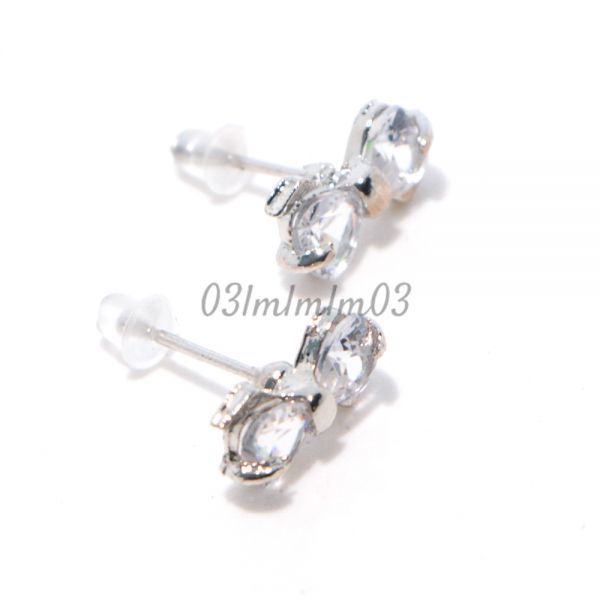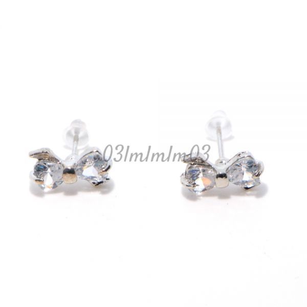 【送料無料】ピアス CZ ダイヤ ハート リボン シルバープレート ポスト インポート アクセサリー ギフト 耳飾り